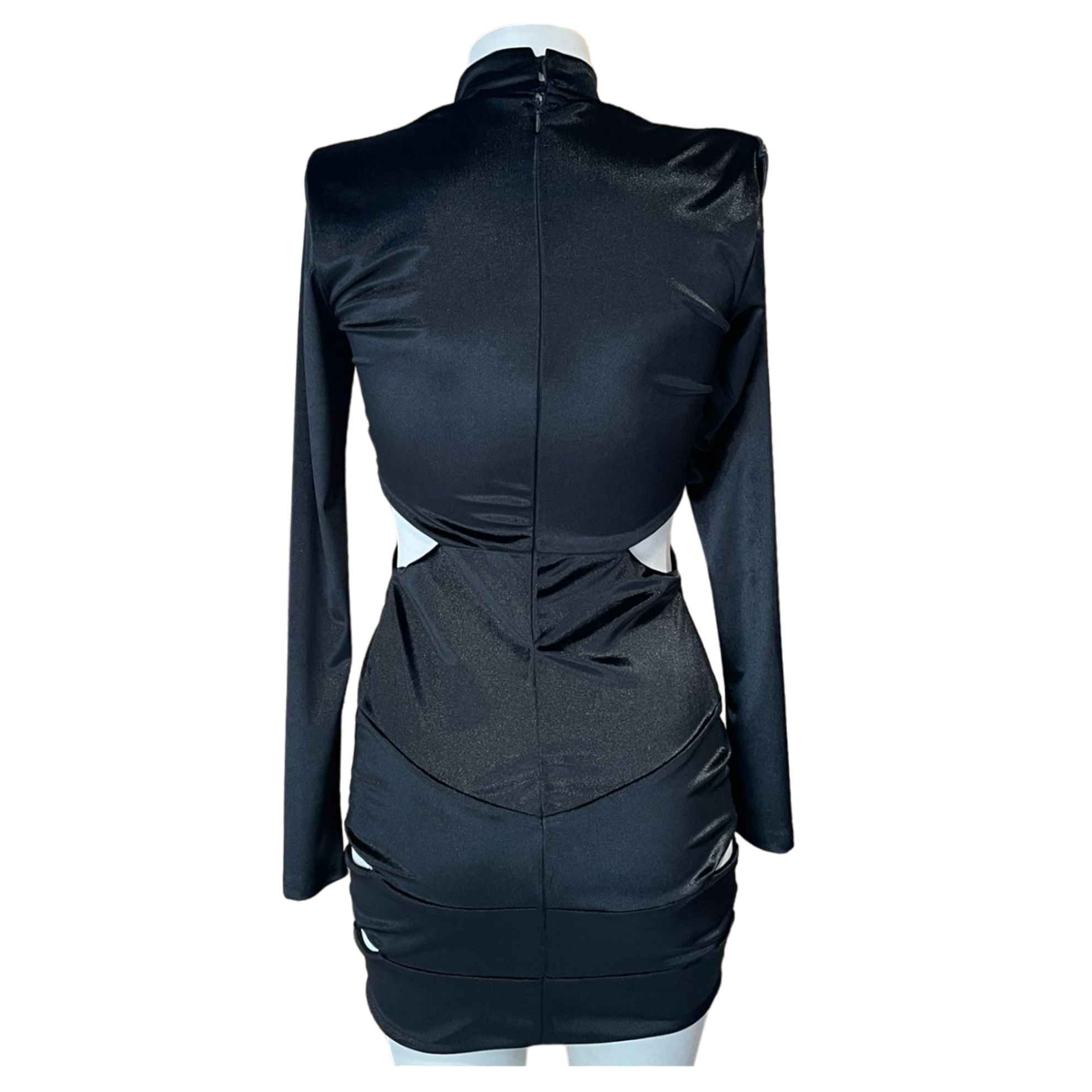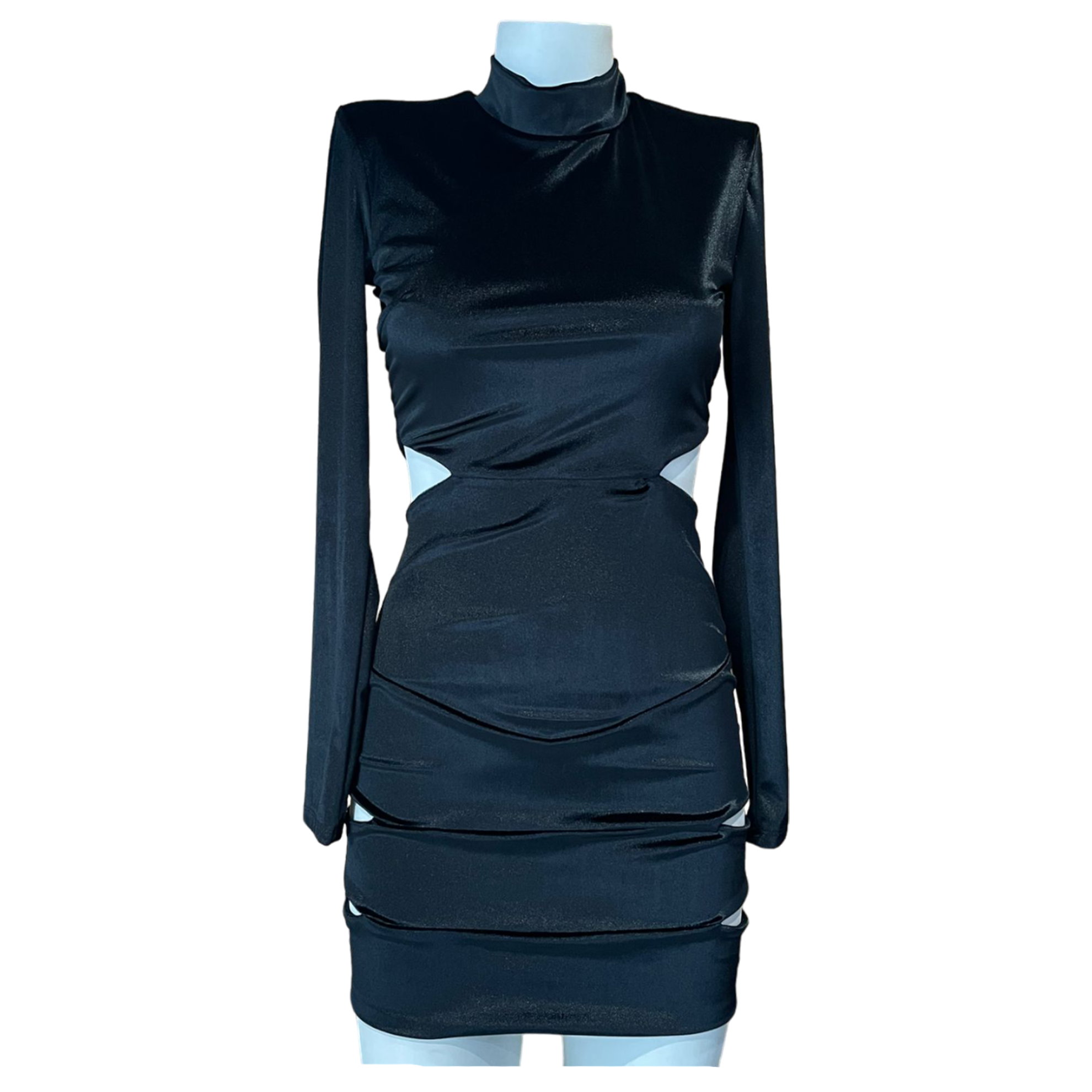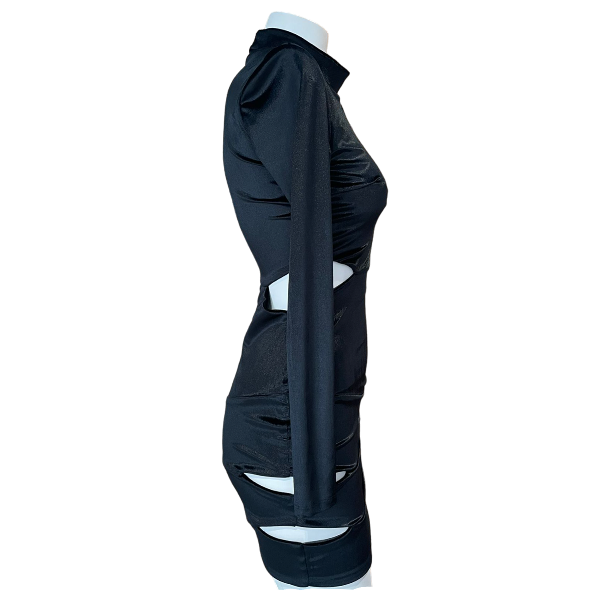 KASSIE FAYE Black sheath dress with half neck and side openings that give a touch of glamor to the garment. Characterized by a slim fit, this dress is perfect for an evening with friends or for a special event.