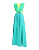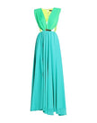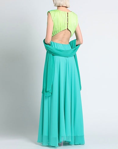 SWEATSHIRT Long chiffon DRESS, tricolor, sleeveless, with deep neckline and front strap. Featuring a comfortable fit, this dress falls linearly and highlights the right points of your body. Wear it for a special daytime event.