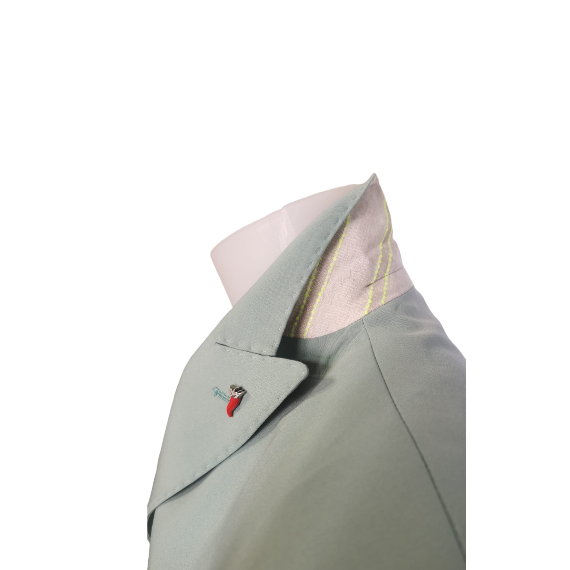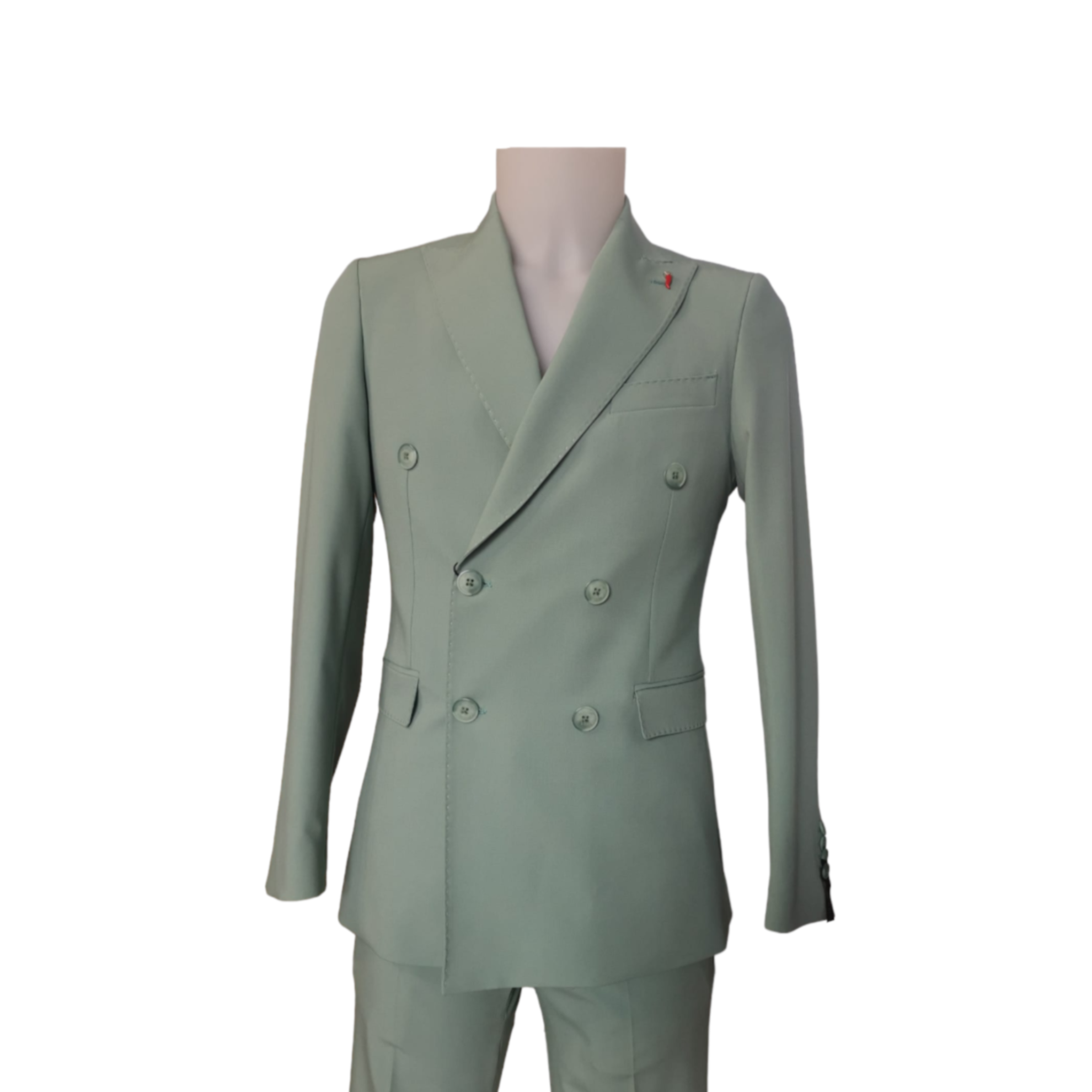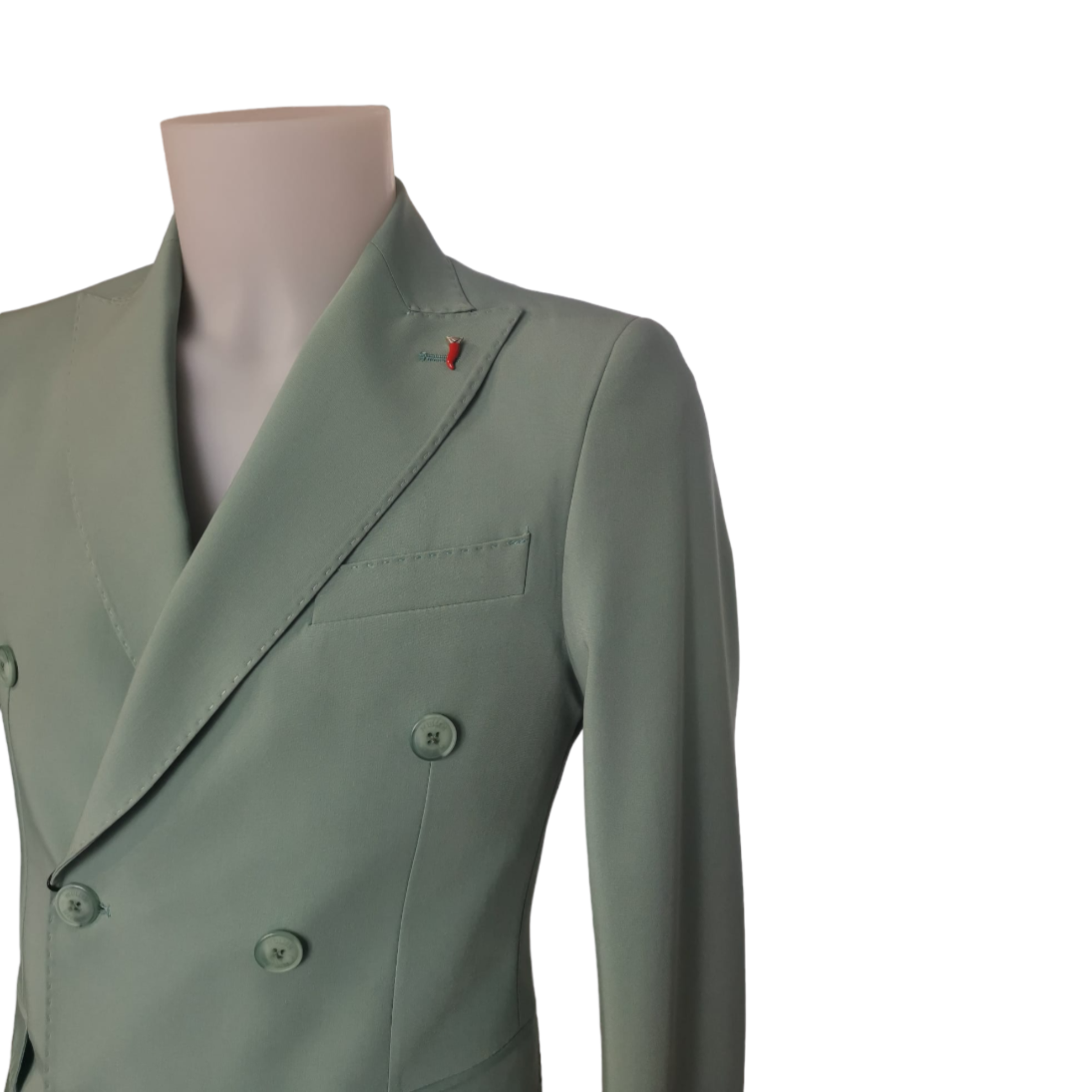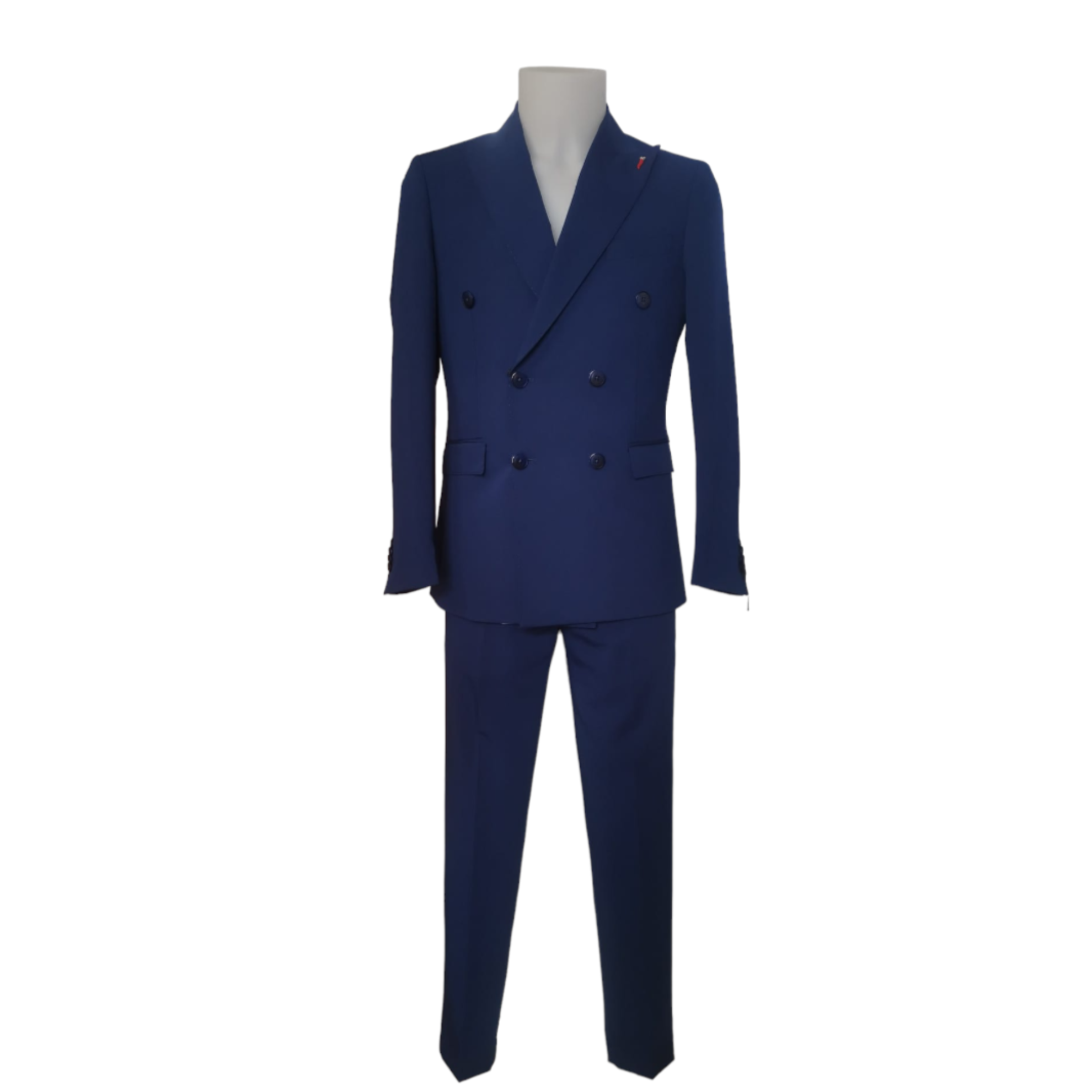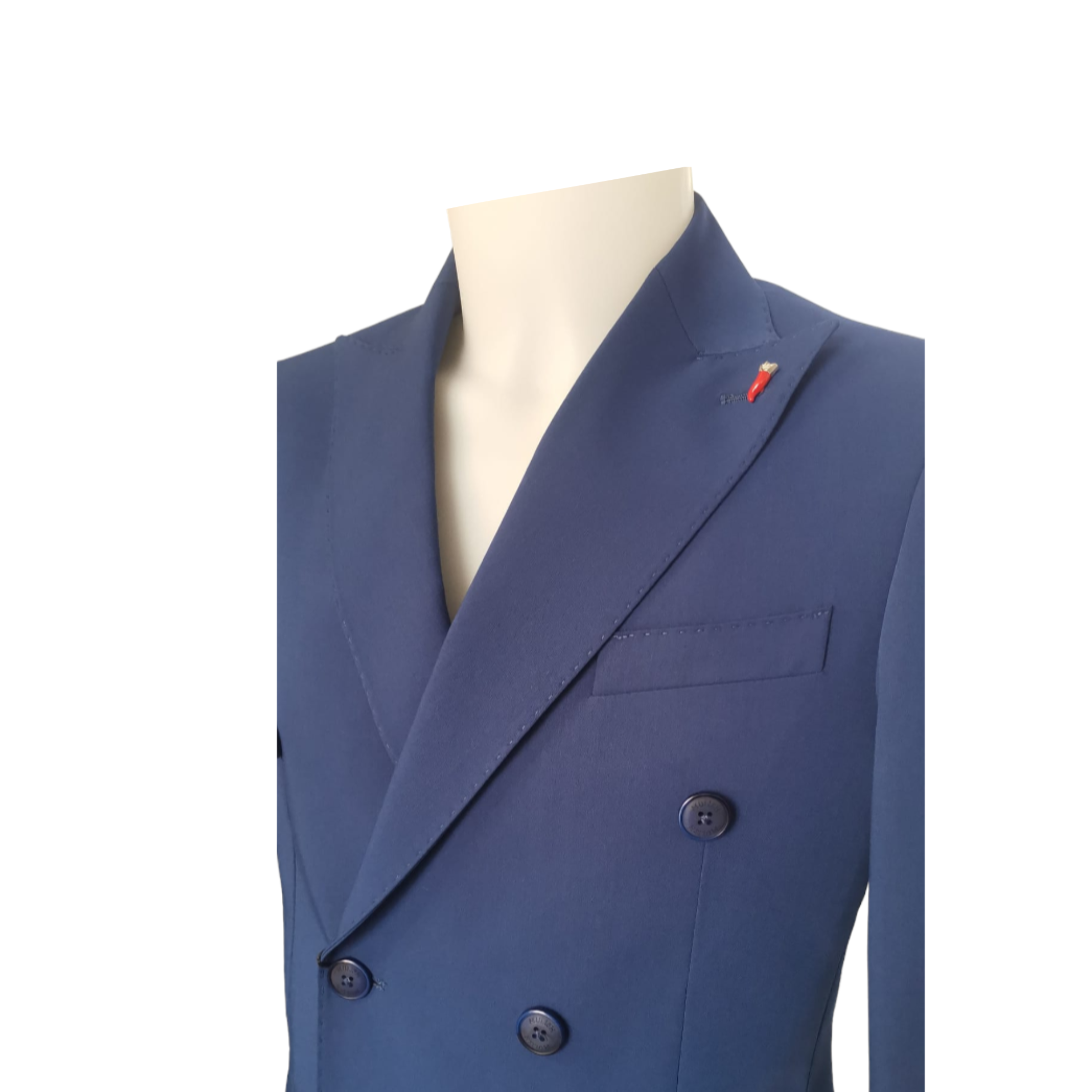 MULISH ABITO da uomo doppiopetto con sei bottoni in tinta, tasche laterali con patta. Pantaloni con tasche e chiusura con bottone e zip nascosta. Disponibile in diverse varianti. A completare il look, il classico peperoncino rosso, simbolo del marchio Mulish.