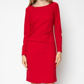 GIULIA VALLI ABITO lungo girocollo con elegante drappeggio sul lato e manica lunga per un look raffinato e fluido adatto a occasioni speciali