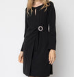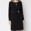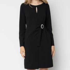 GIULIA VALLI ABITO lungo girocollo con raffinata apertura sul petto manica lunga e cintura in coordinato arricchita da accessorio in strass per un look elegante e femminile