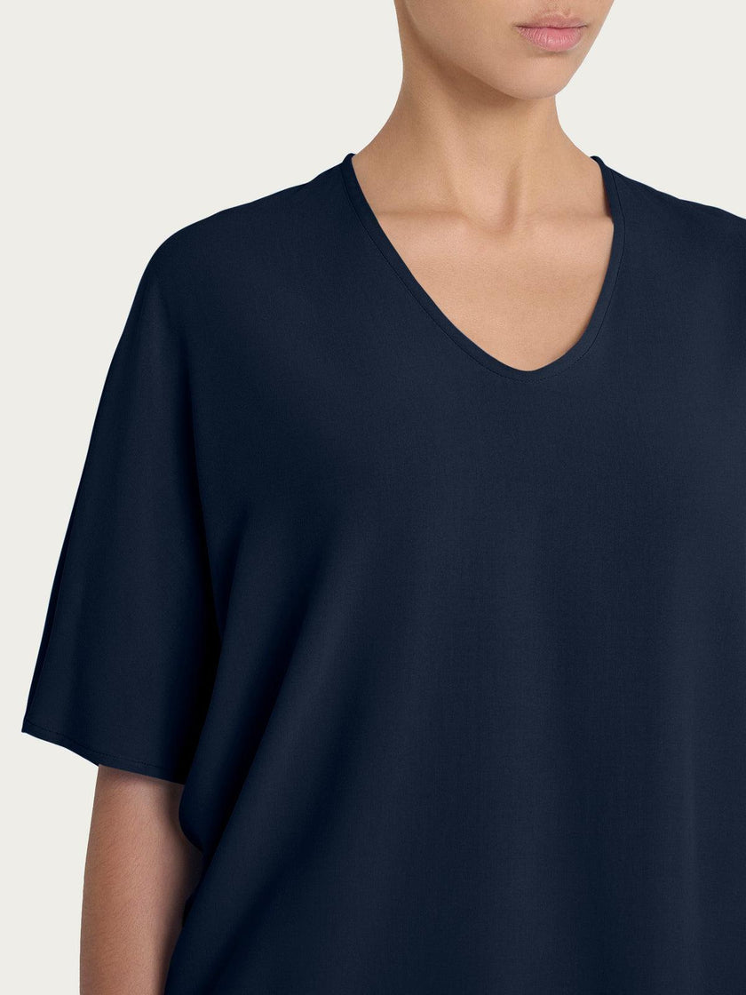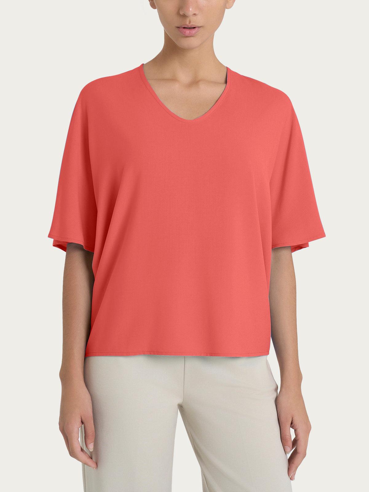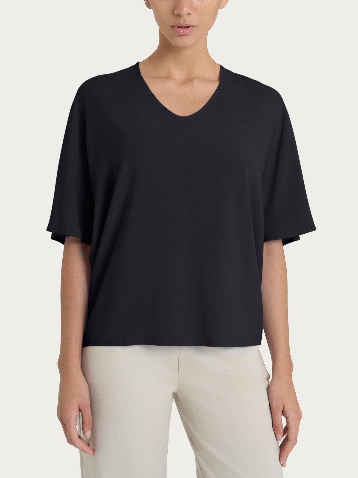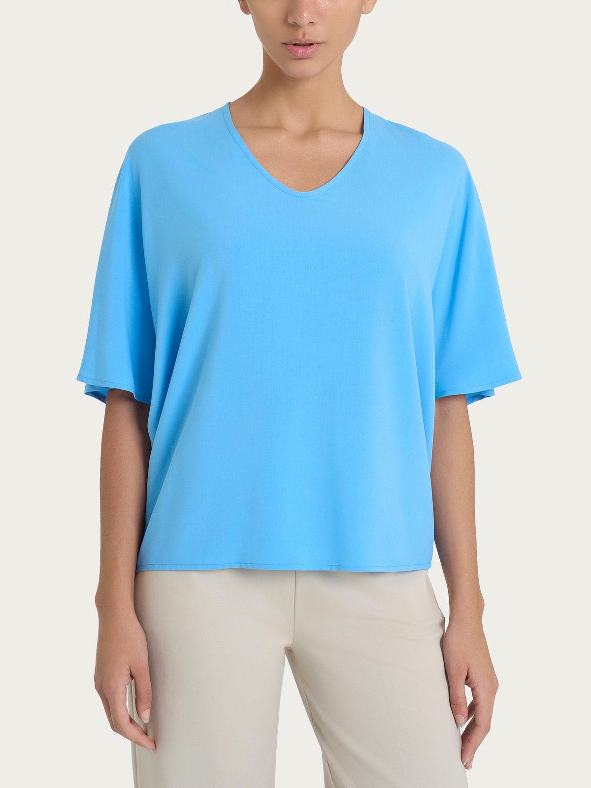 Blusa con scollo a V e manica al gomito in Ecoseta
