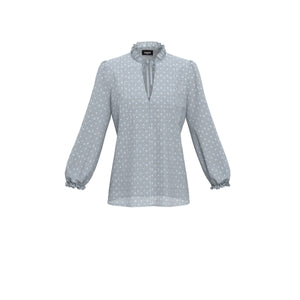 RAGNO BLUSA da donna in twill di viscosa con collo coreana a serafino e maniche 3/4 arrotolabili con fantasia floreale e fantasia con clip, in base al colore.