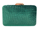 OLGA BERG BAG clutch in printed velvet, boasts a long and delicate golden chain. Suitable for any formal event, it exudes an air of elegance and sophistication, making it the perfect accessory for any evening outfit.