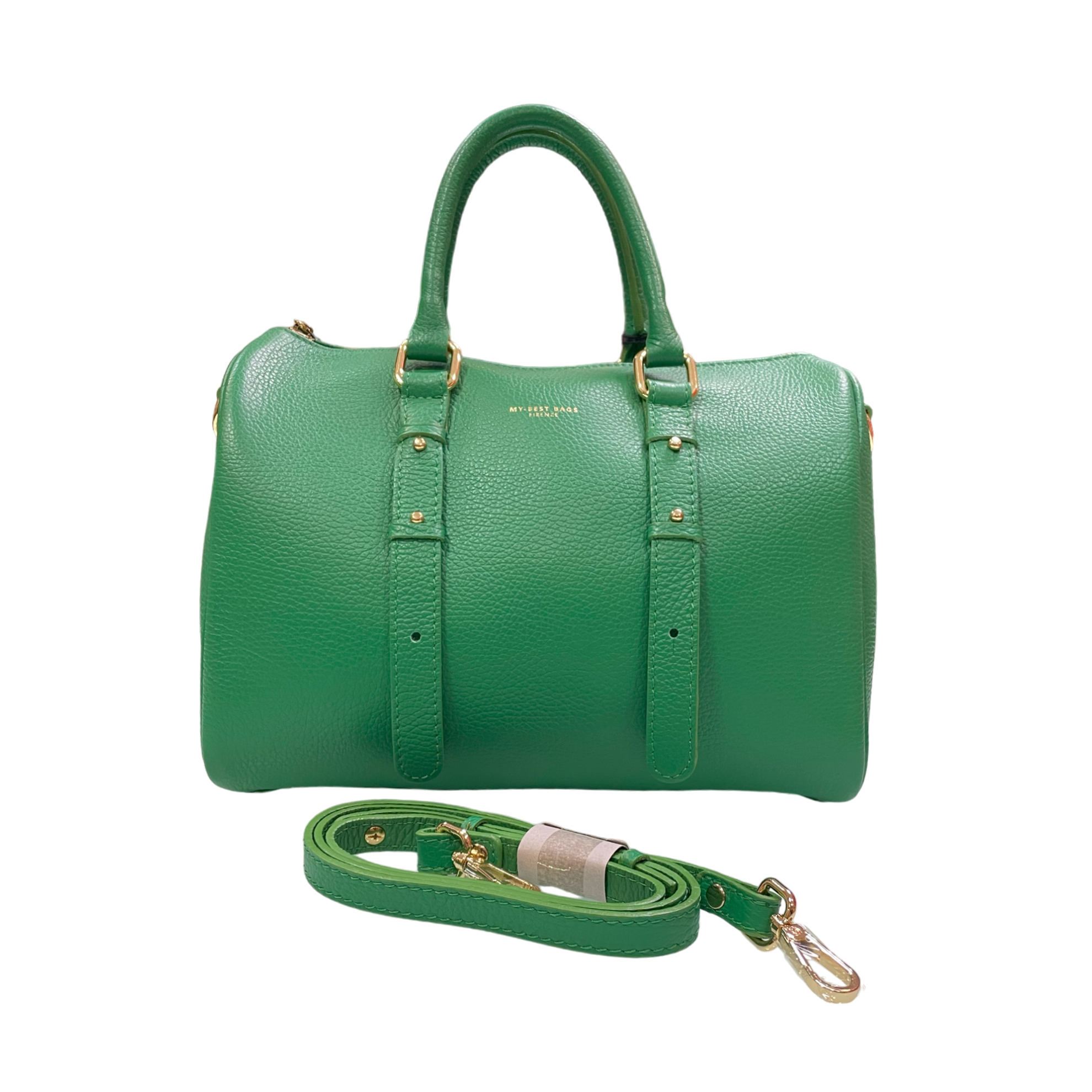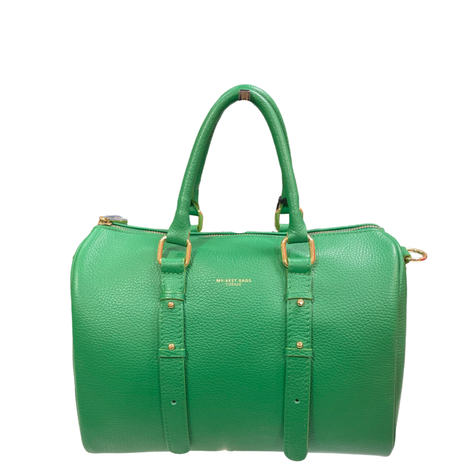MY BEST BAGS Leather BAG , trunk model, with double handle and internal adjustable shoulder strap. Available in different colors. It features two straps with gold details and zip closure. Roomy and with a refined design, this bag is perfect for a day look.