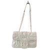 BLUGIRL BAG in white leather with floral stitching. Characterized by a chain shoulder strap and a clutch closure with applied brand initials, this bag is versatile and goes with any outfit. Wear it both day and night and unleash all the glamor in you.
