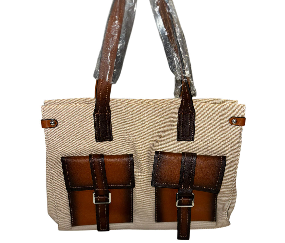 Borsa Shopper In Tessuto e Pelle - Elegante borsa shopper in canvas con dettagli in pelle e tasche frontali con fibbie. Dotata di manici resistenti e tracolla regolabile. Perfetta per un look casual-chic e per chi ama la praticità senza rinunciare allo stile.