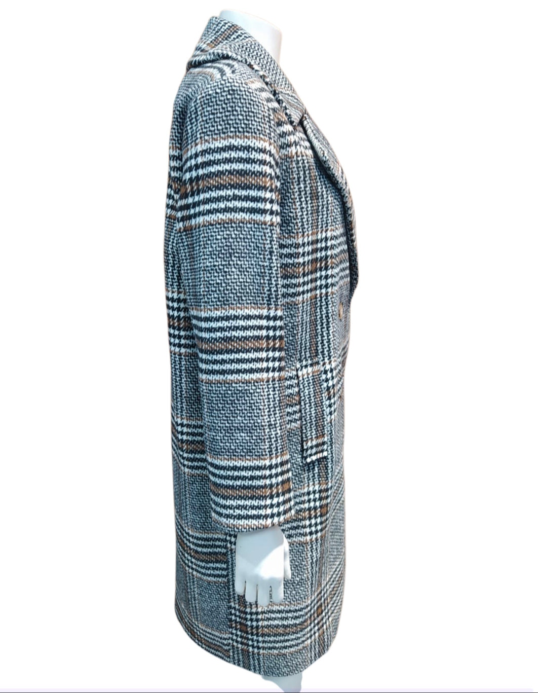 FEDERICA ERRE CAPPOTTO lungo doppio petto con rever classico e tasche a filo. Realizzato con fantasia principe di Galles a maglia larga.