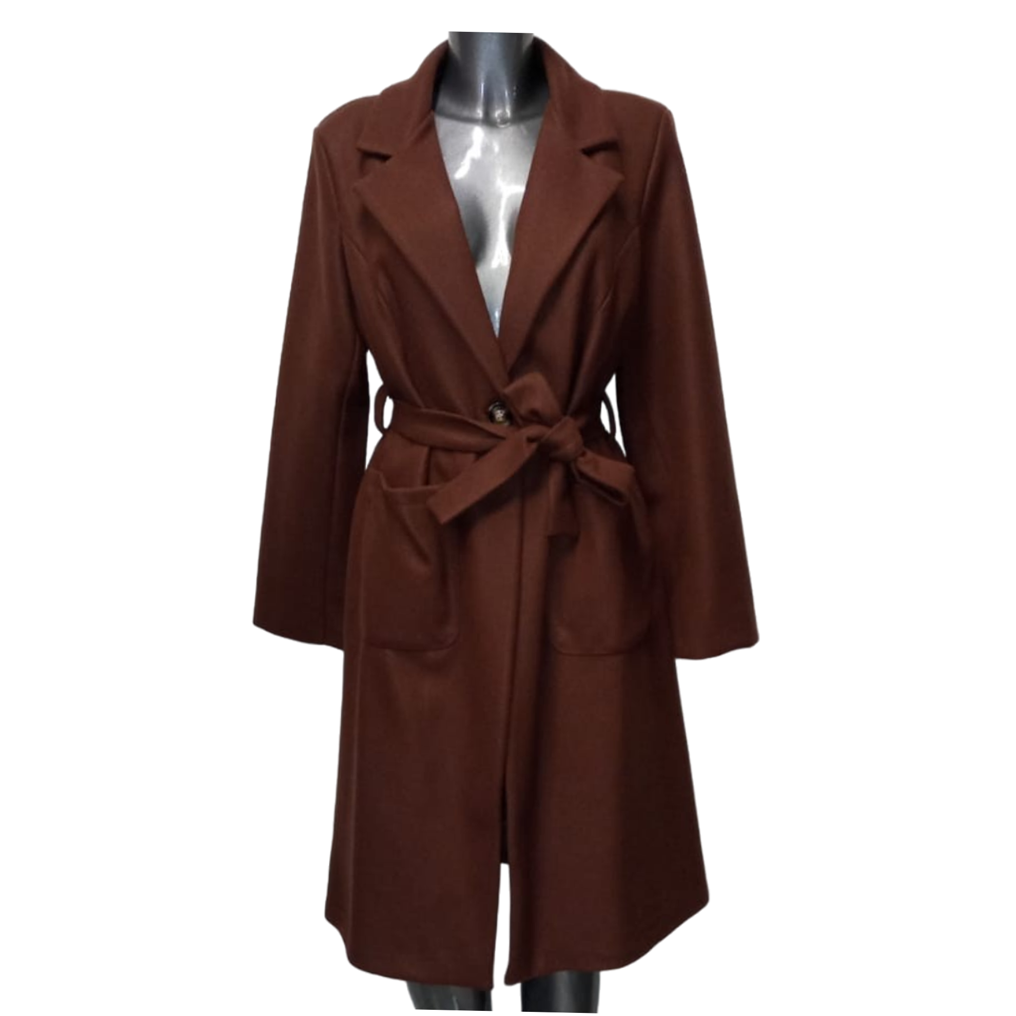 MYASTREET BATHROBE COAT , available in a rich brown colour. Featuring a belt at the waist and two large side pockets, this overcoat is versatile and refined. To be worn for an evening with a classic dress or suit.