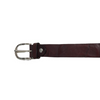 MINORONZONI 1953 burgundy leather belt . The detail along the final part represents a highly recognizable distinctive element. The belt is completed with a metal buckle. It is a versatile accessory that can elevate your style for both formal and casual occasions.