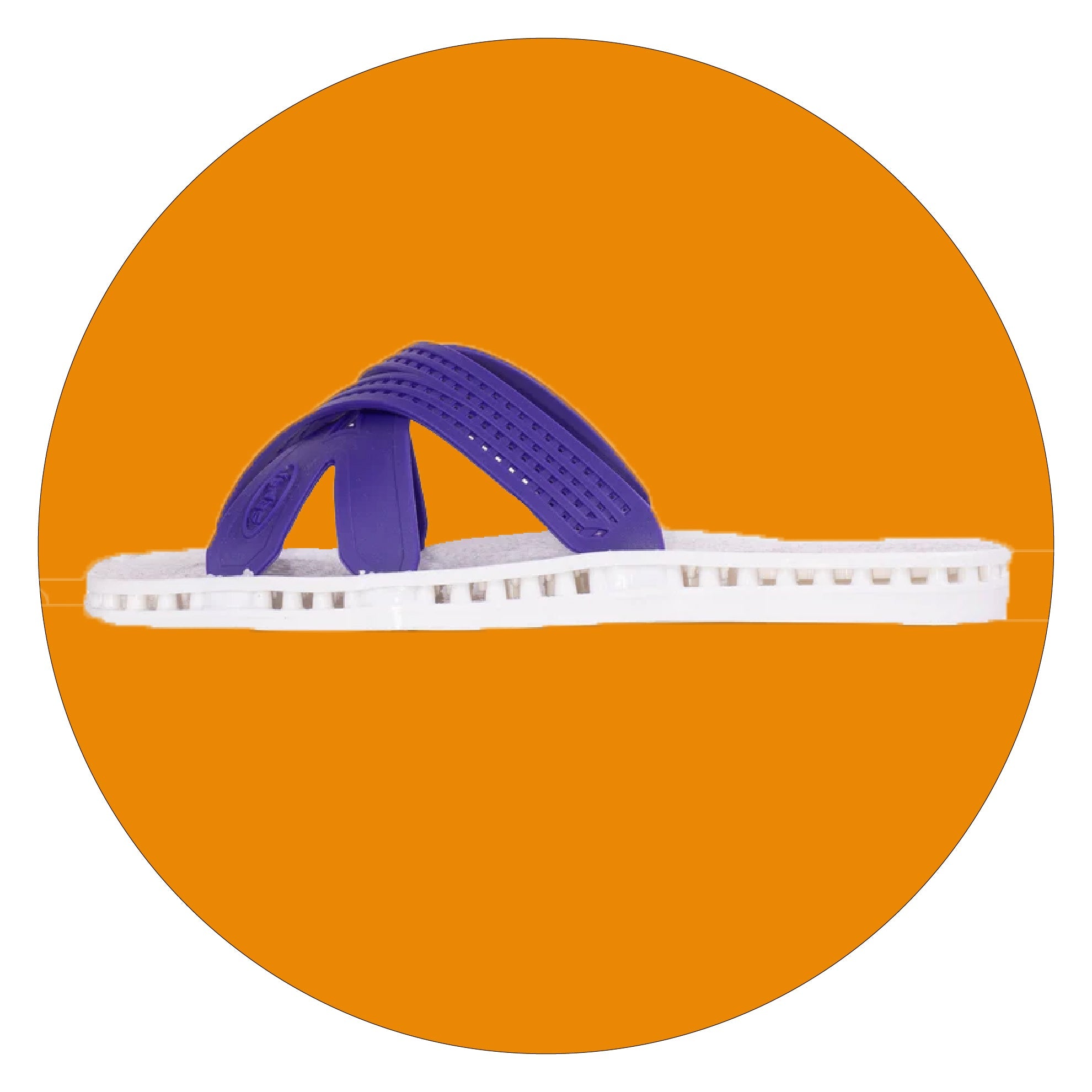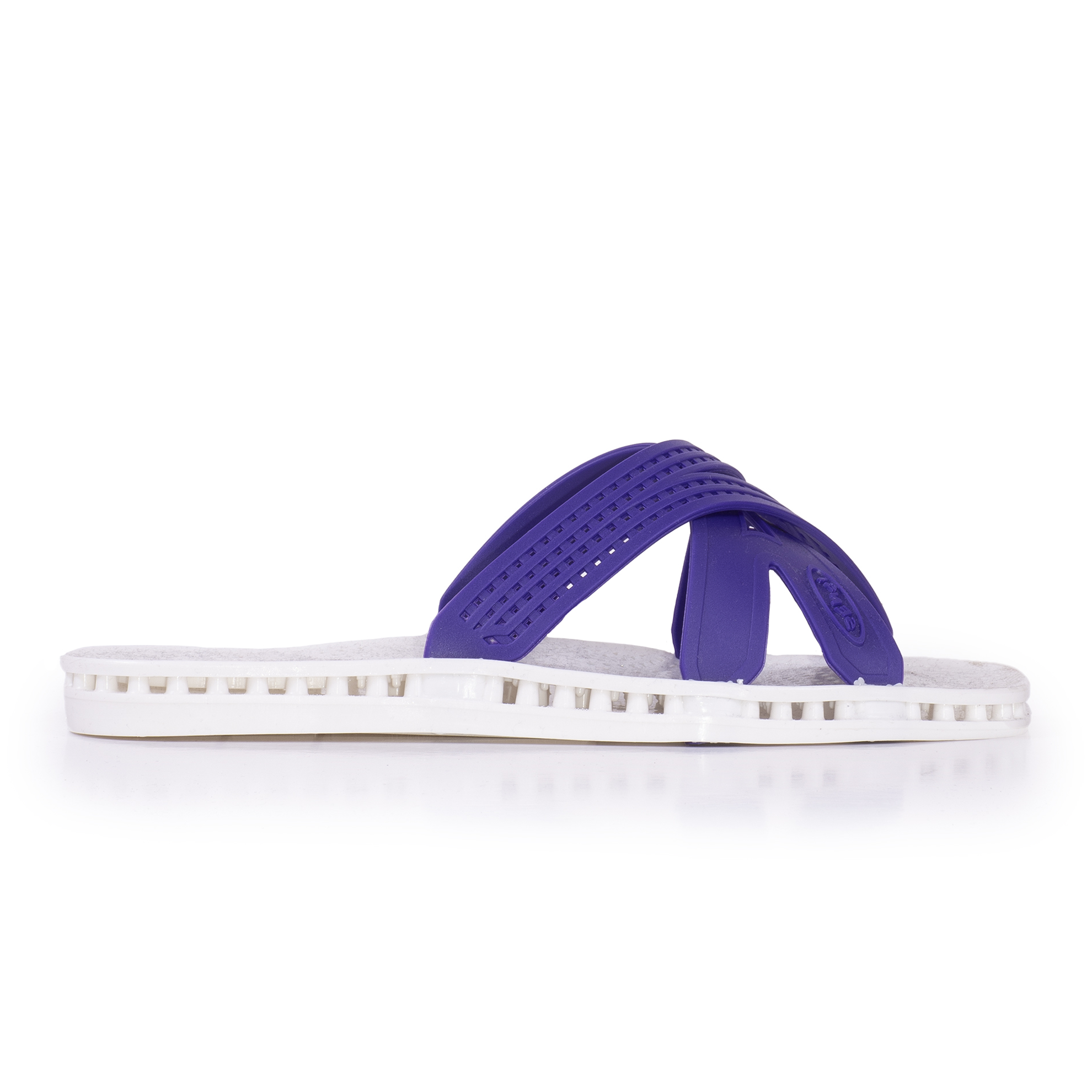 SENSI rubber slipper available in different colours. Perforated straps provide a unique touch, allowing sand to slide off easily. With their classic white soles, these sandals are perfect for any day at the beach.