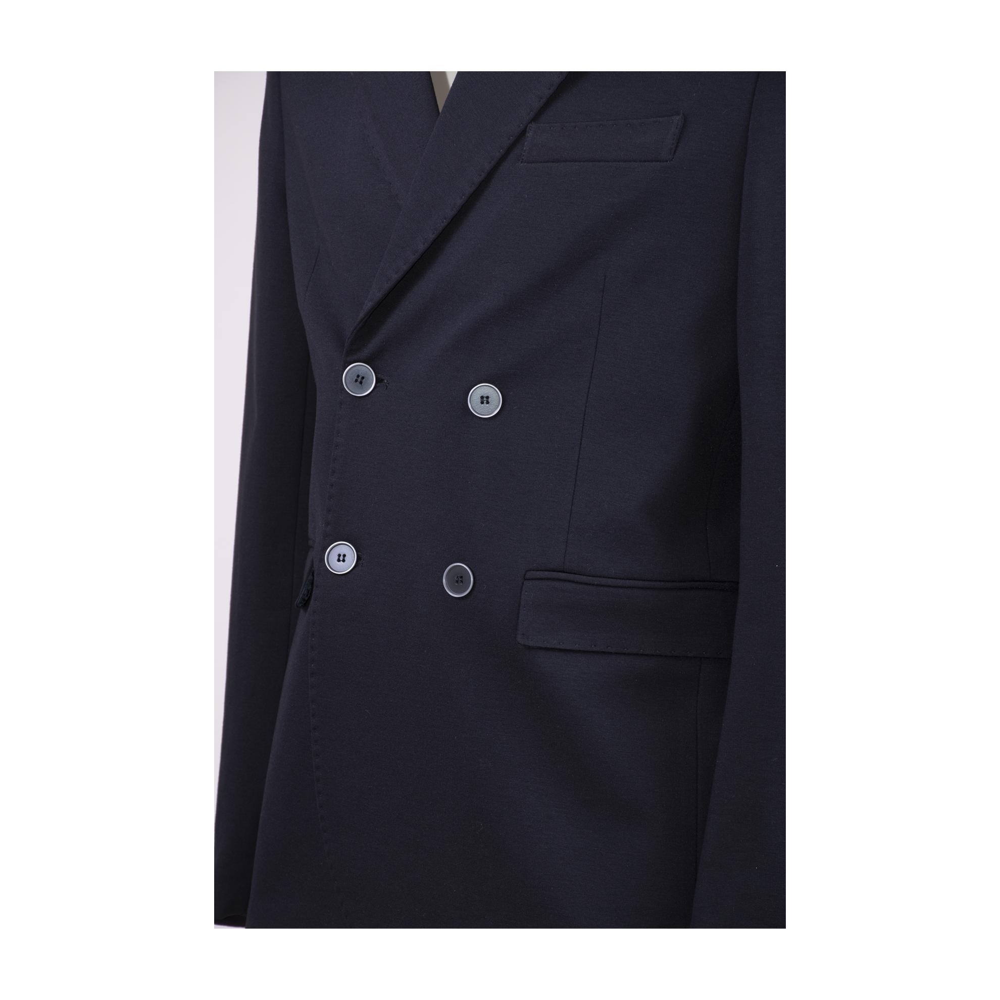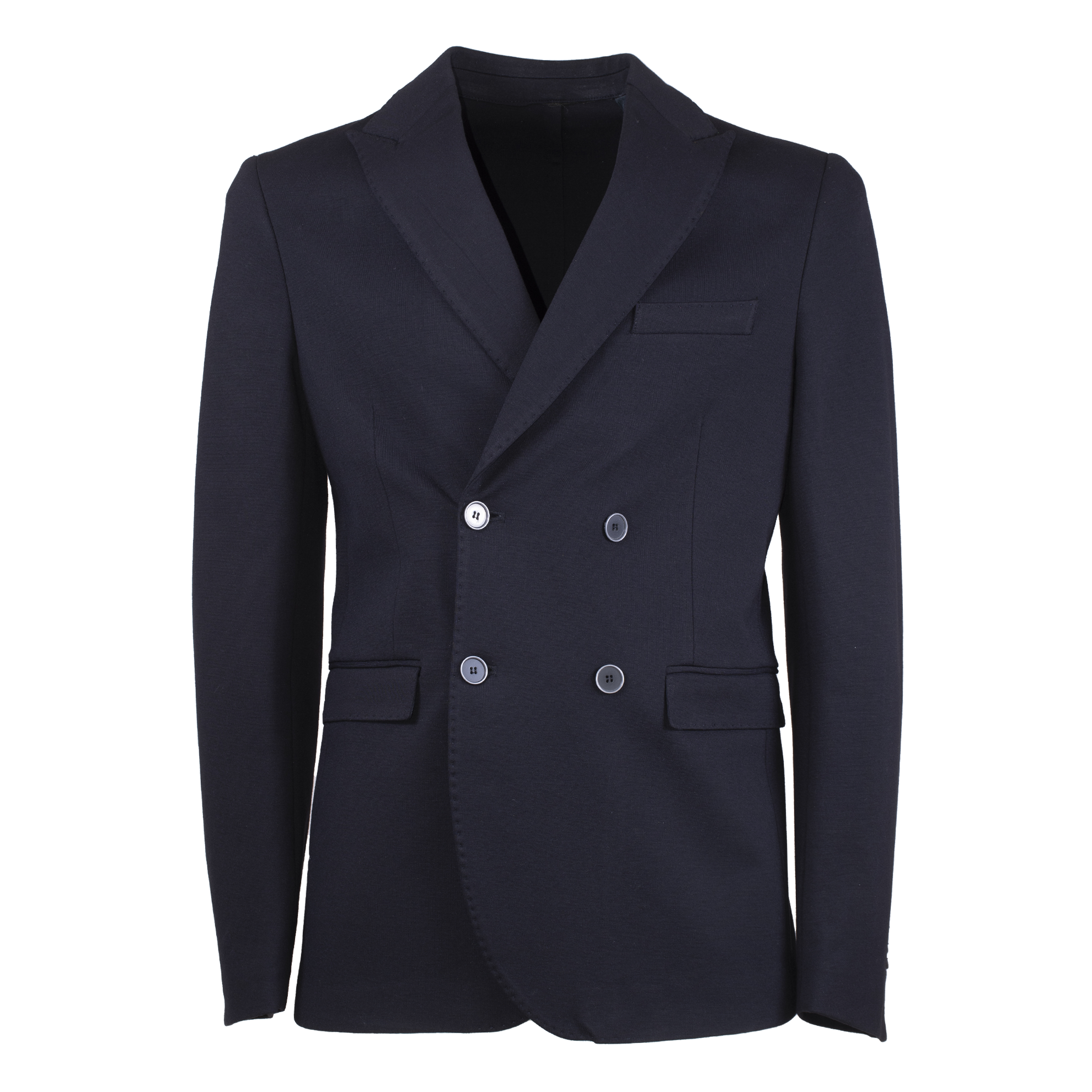 TRIPLE A double-breasted JACKET available in an elegant blue color. It features a four-button closure, two side pockets with flaps and a welt pocket at the top. Get ready to catch everyone's attention with this elegant slim fit jacket.