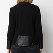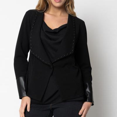 GIULIA VALLI GIACCA con rever sciallo e borchie nere, a un bottone ricoperto in ecopelle, con maniche in ecopelle, per un look audace e sofisticato che mescola eleganza e dettagli rock.