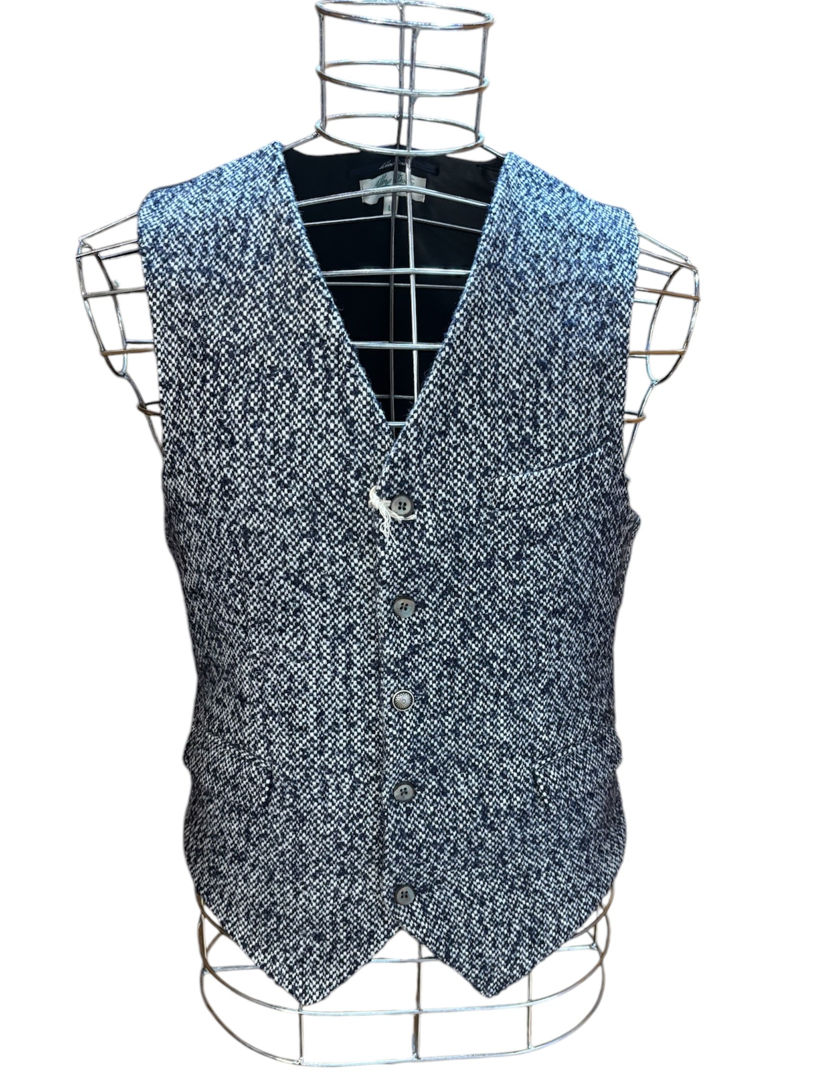 ALLEY DOCS Questo gilet uomo in lana è il tocco di stile perfetto per ogni outfit. Con il suo modello fantasia e taschino al petto, aggiunge un tocco di eleganza e versatilità. La chiusura con 4 bottoni garantisce una vestibilità confortevole e sicura. Ideale per un look professionale o casual.