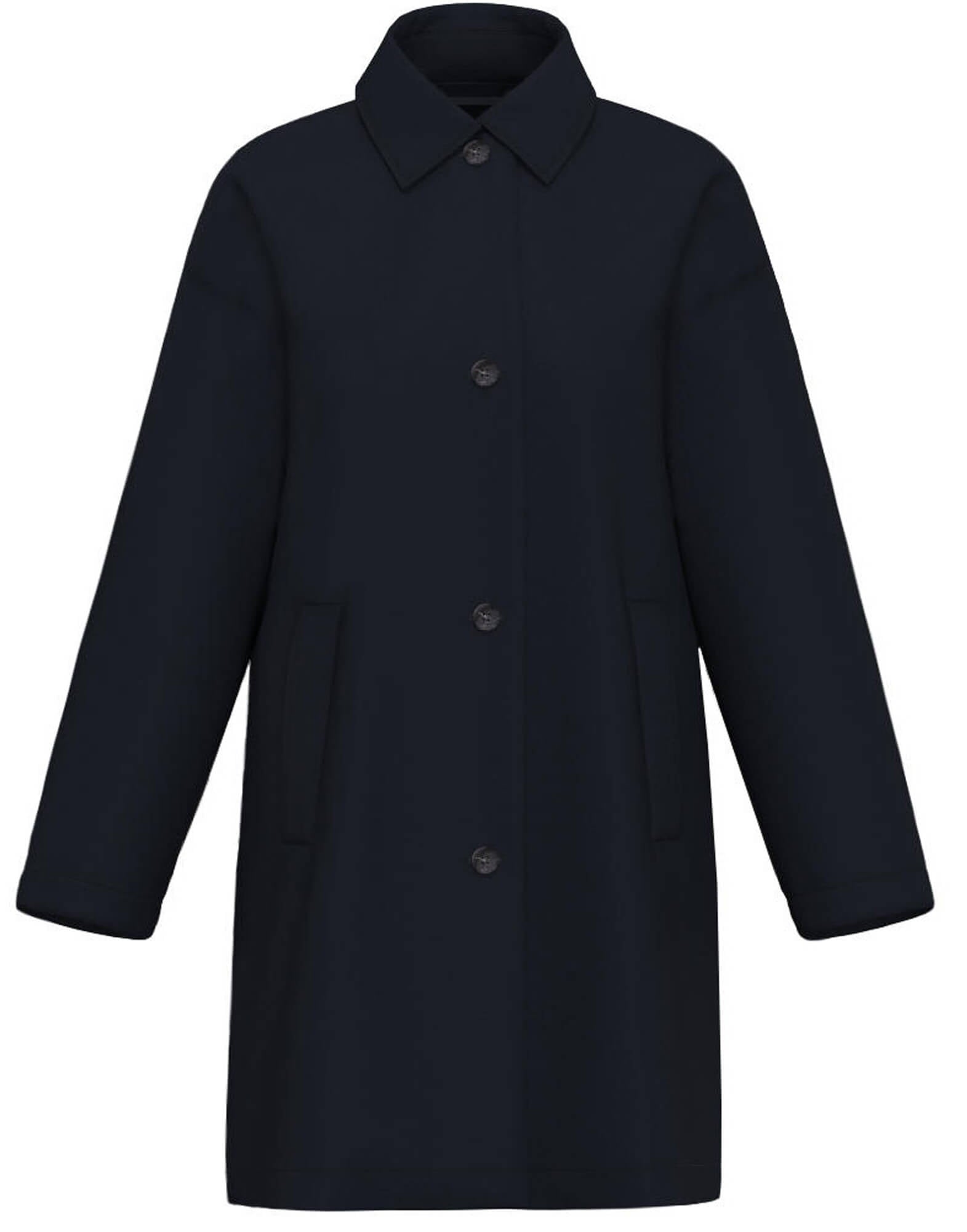Impermeabile Midi Basic Collo Piccolo con Bottoni e Tasche a Filo