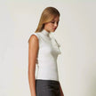 ACTITUDE TWINSET TOP in white cotton without sleeves and with bed. Featuring a draped design and an eccentric flower applied on the shoulder, this top is ready to be shown off for an aperitif with friends. Wear it with a skirt or classic trousers.