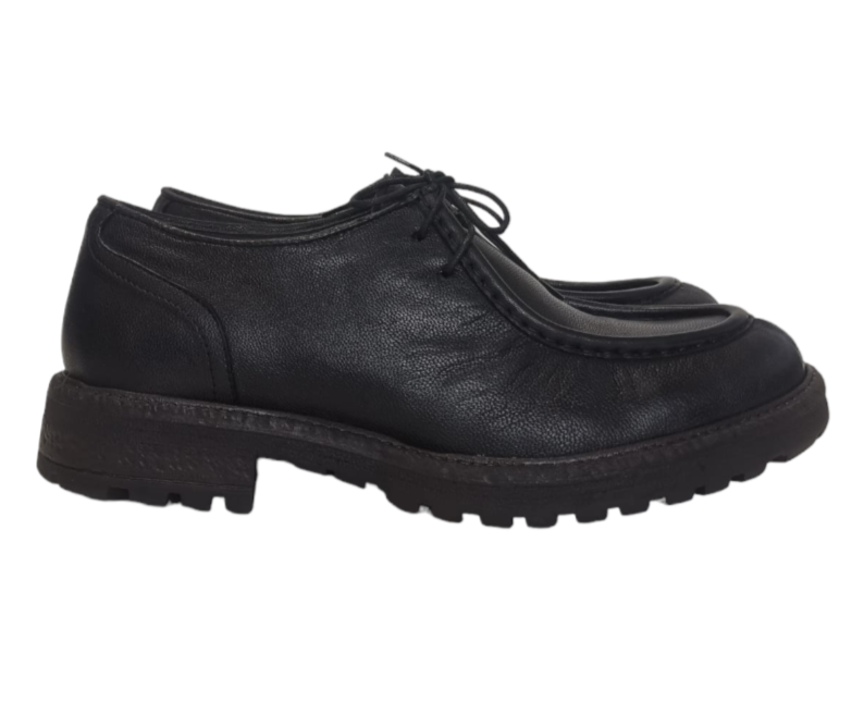 DOTS STRINGATA in pelle con lacci, cuciture sulla patta e suola in gomma. Una scarpa versatile, da abbinare sia ad un abito che ad un jeans.