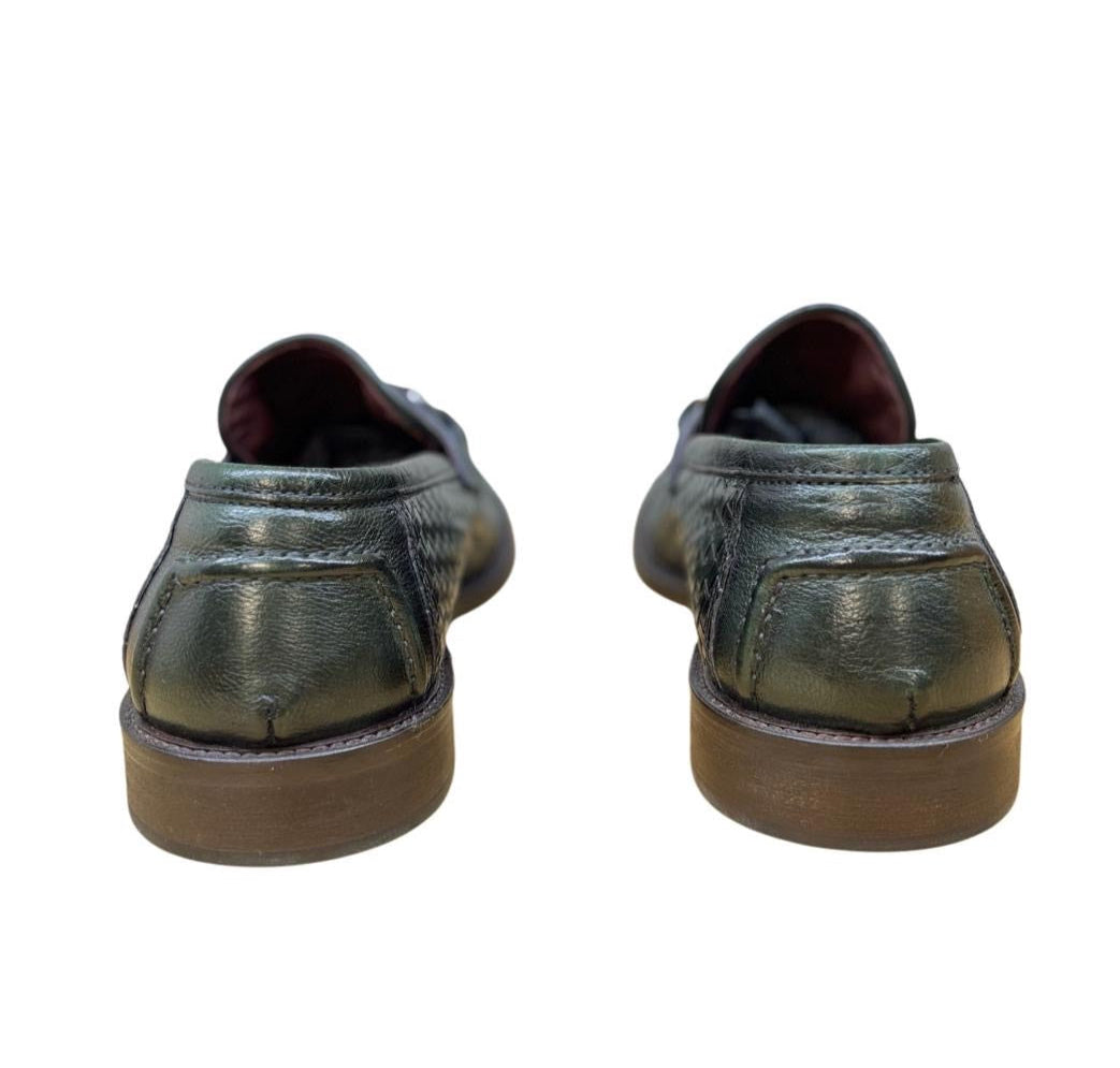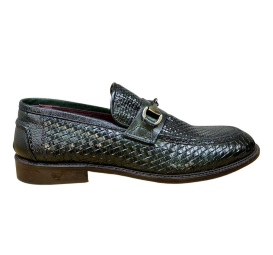 WOW MOCASSINO in pelle intrecciata con fondo in cuoio e fibbia in bronzo effetto anticato. Un design elegante e raffinato, perfetto per chi cerca un tocco di classe senza tempo, che unisce comfort e stile unico.