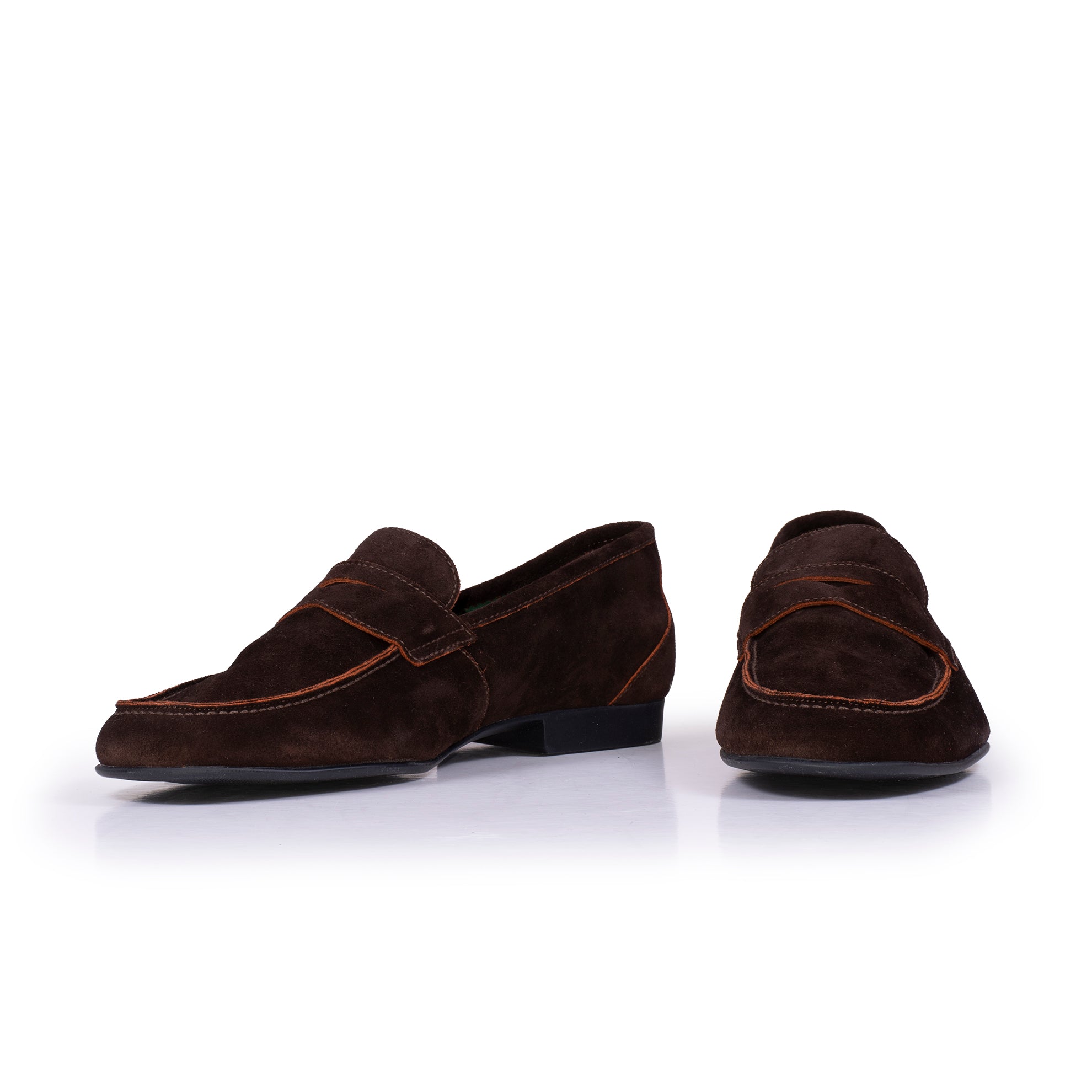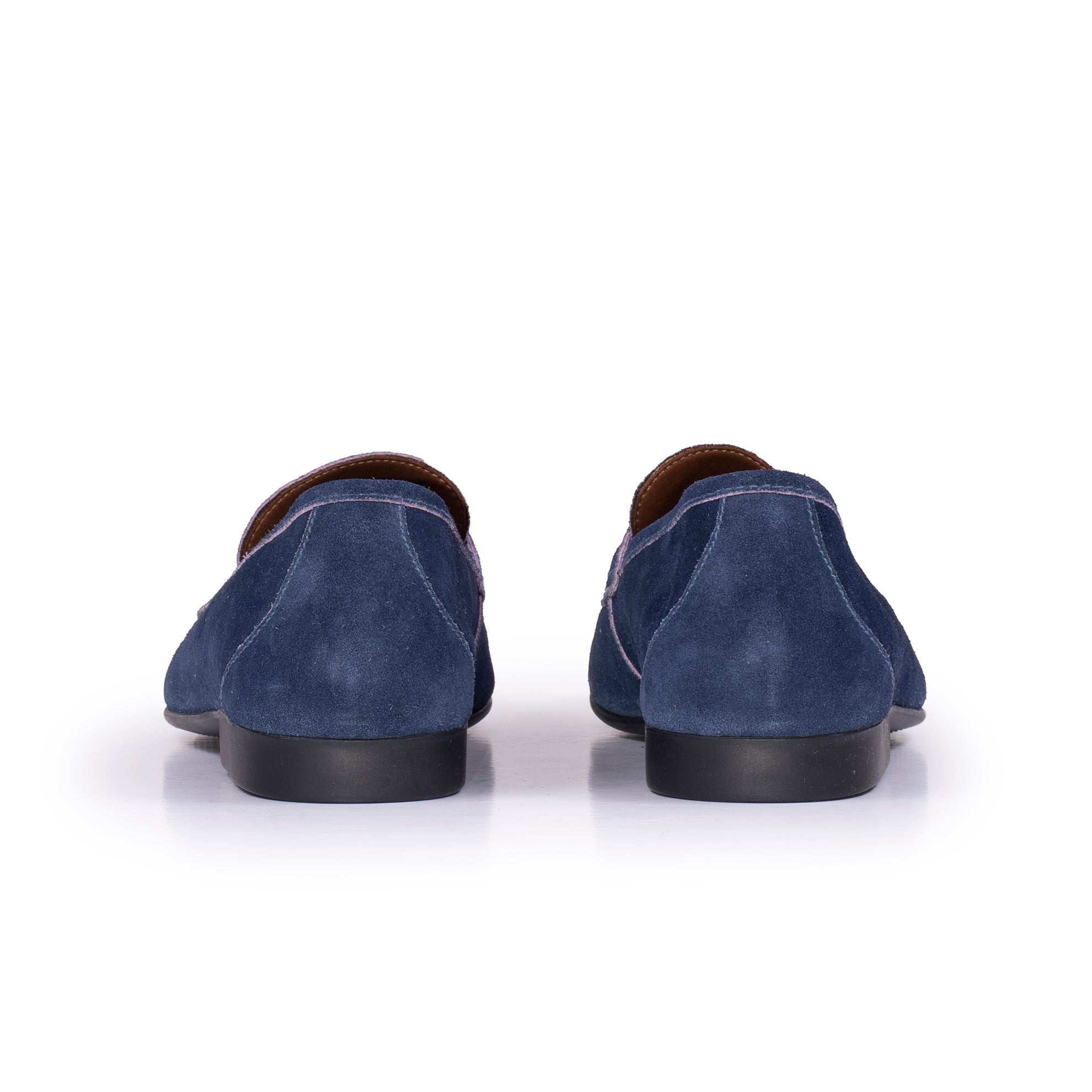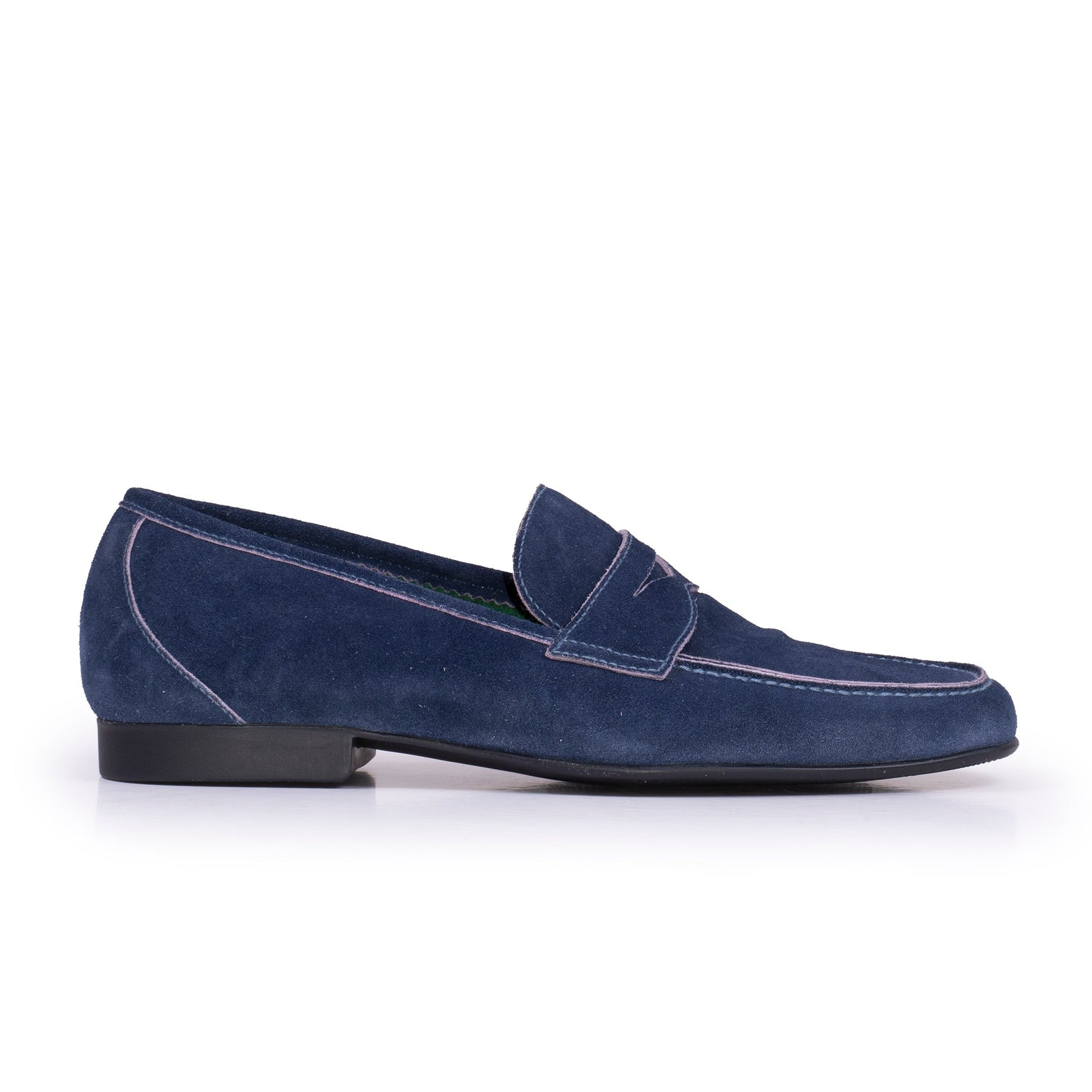 Mocassino in pelle scamosciata con cuciture a contrasto