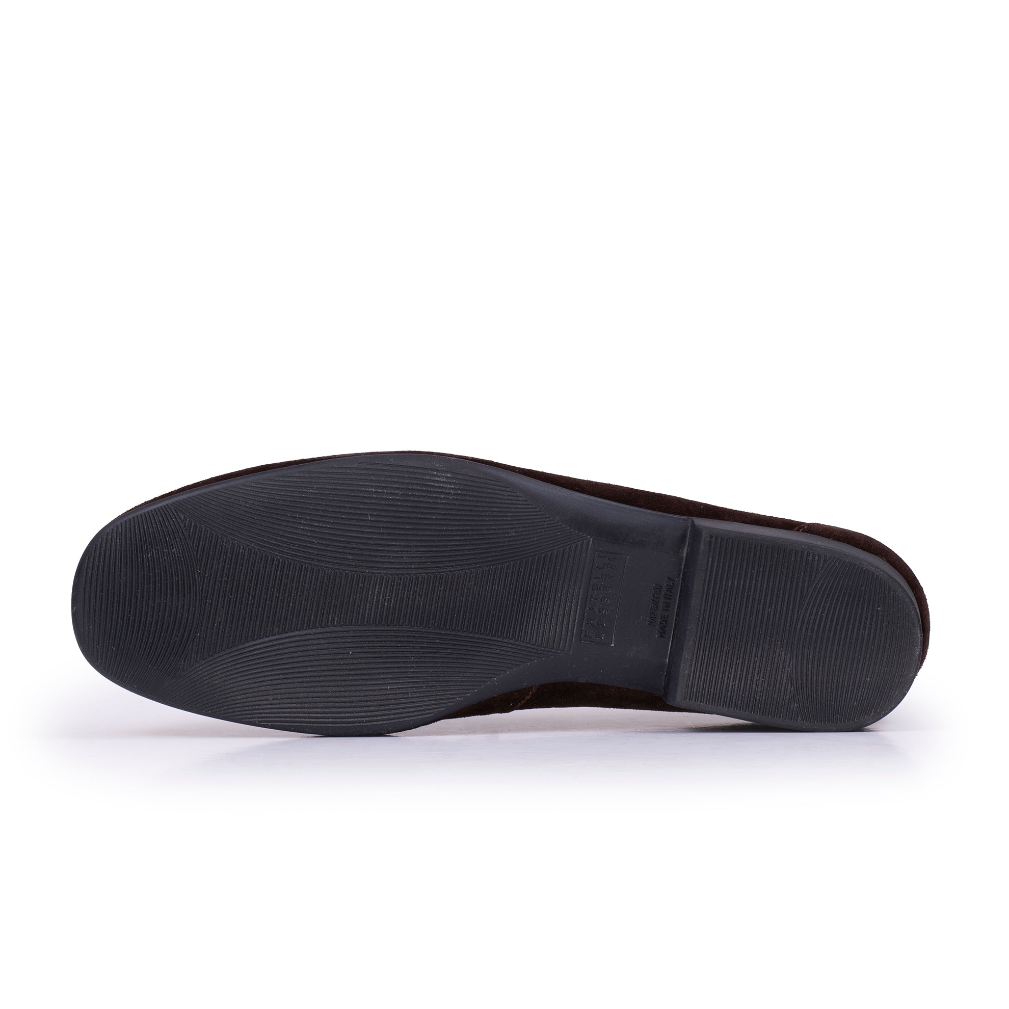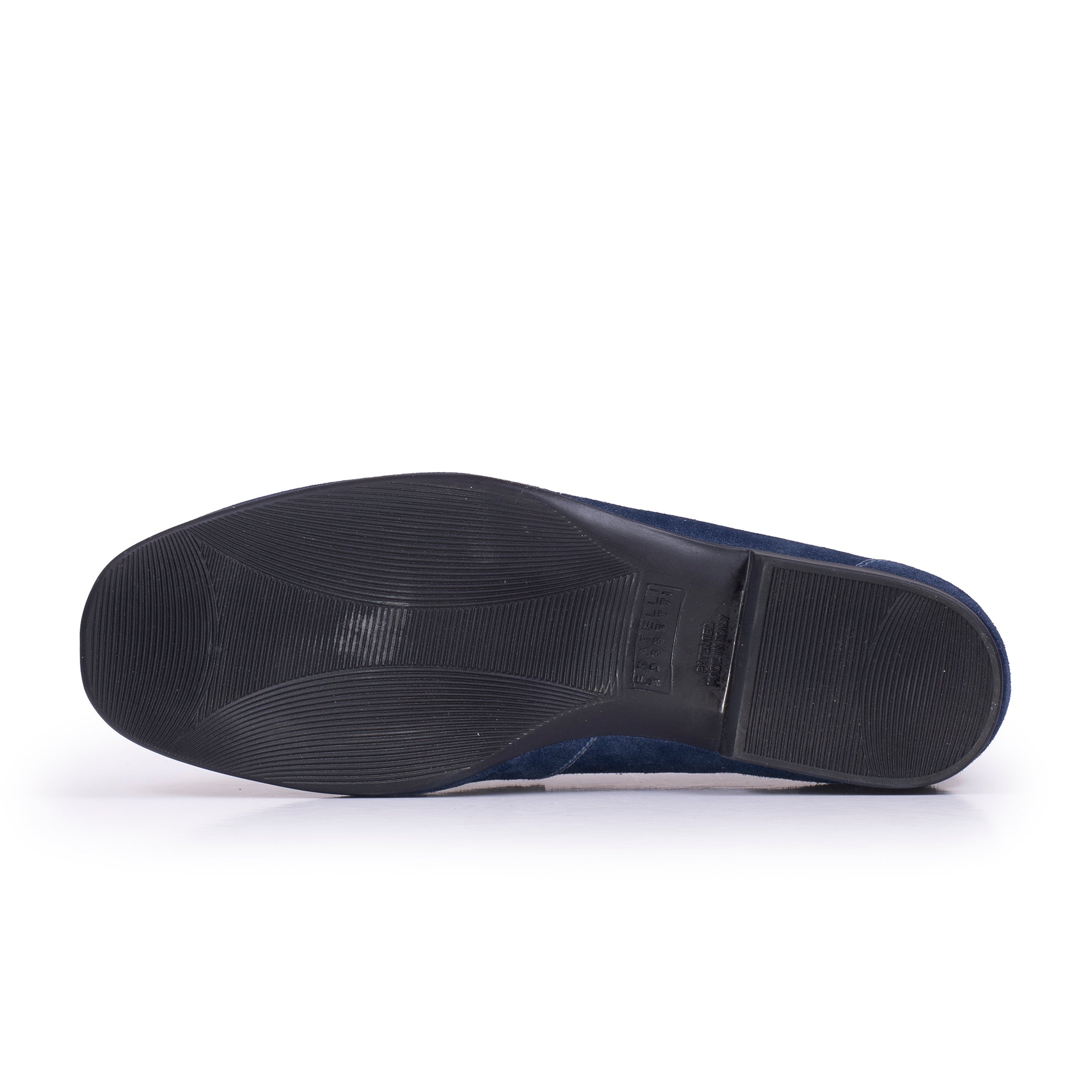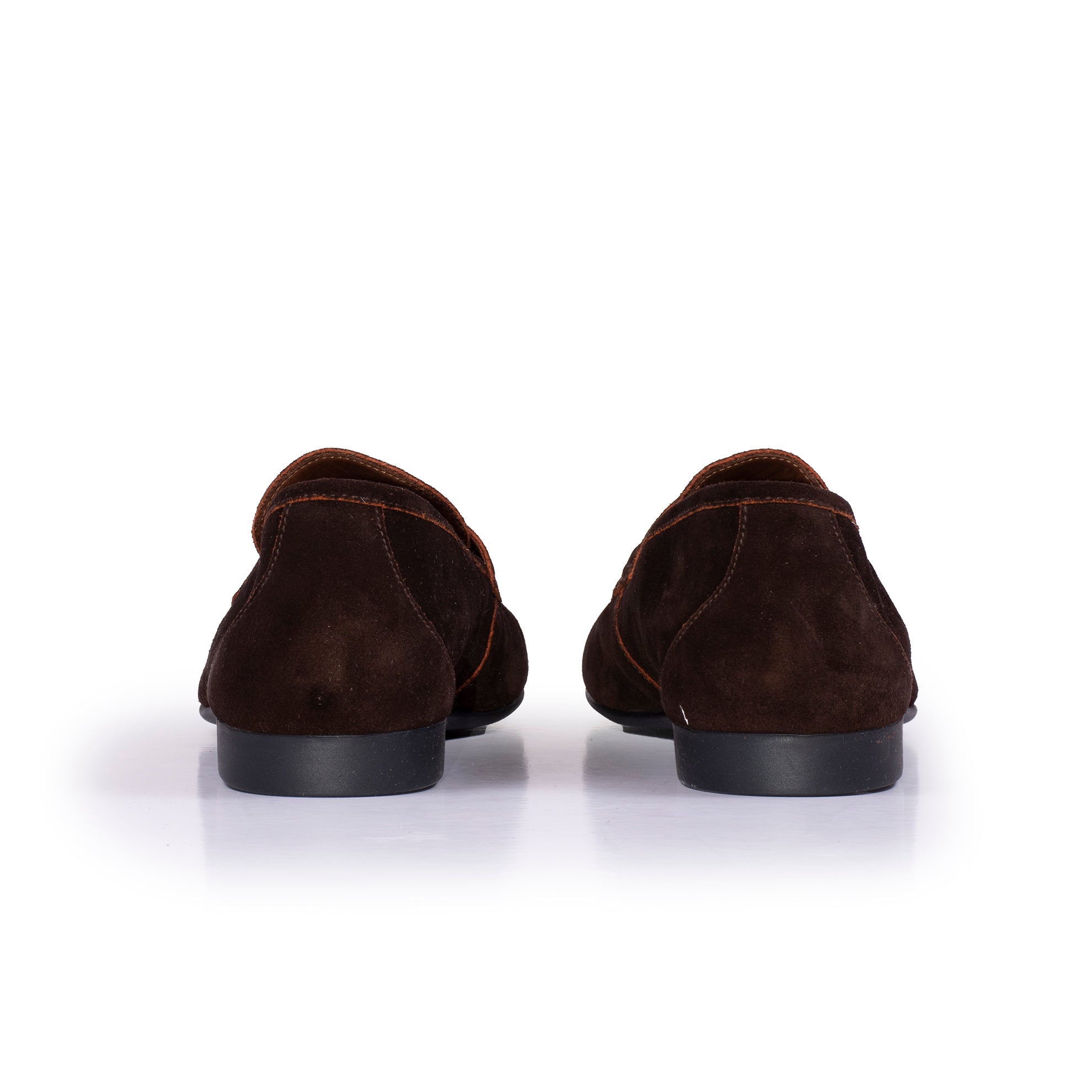 Mocassino in pelle scamosciata con cuciture a contrasto