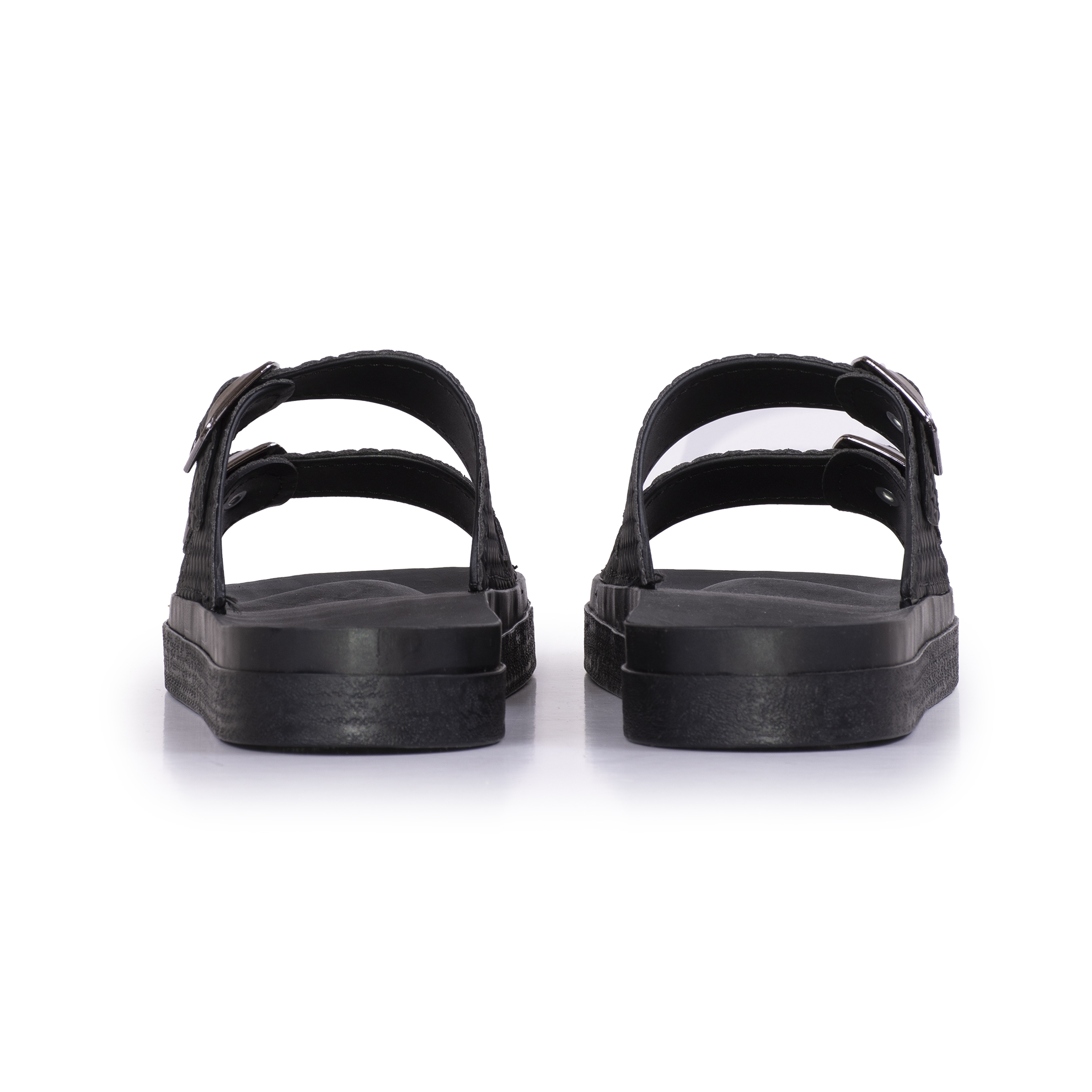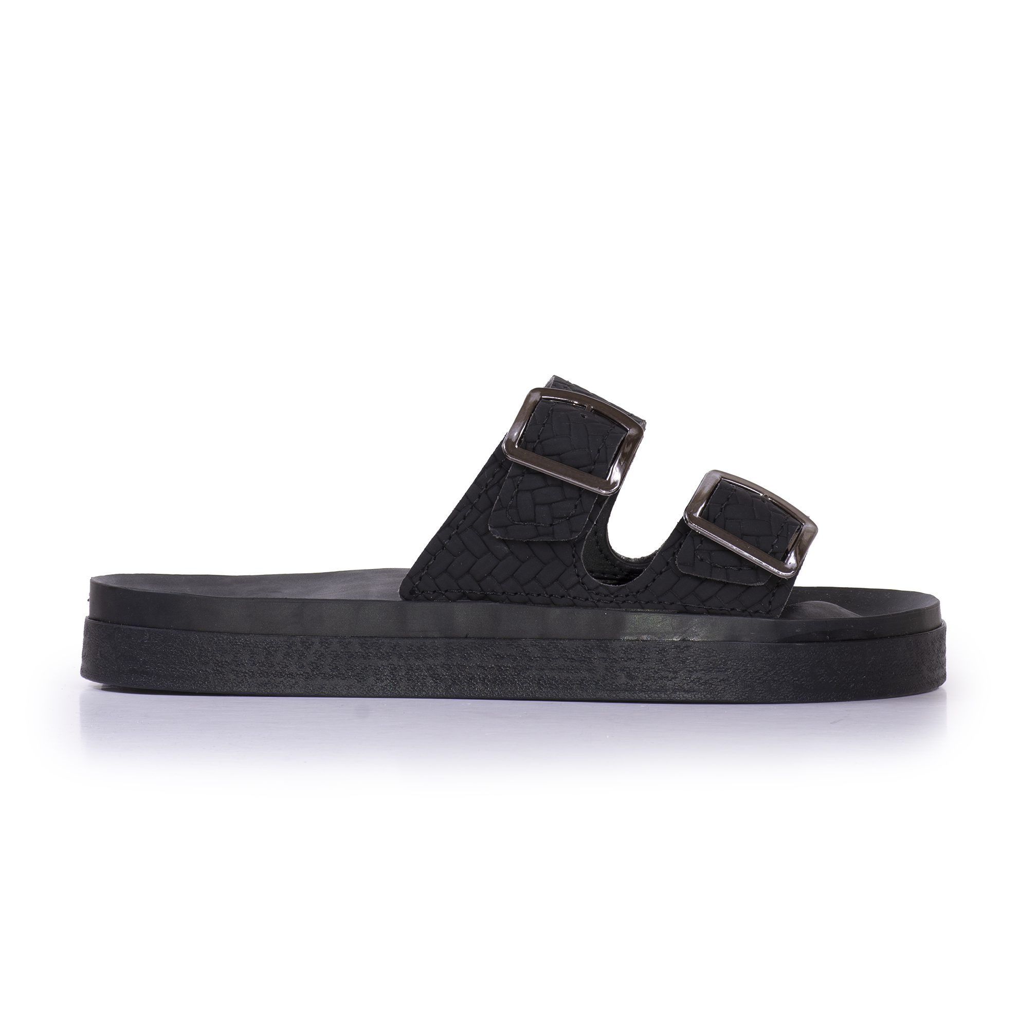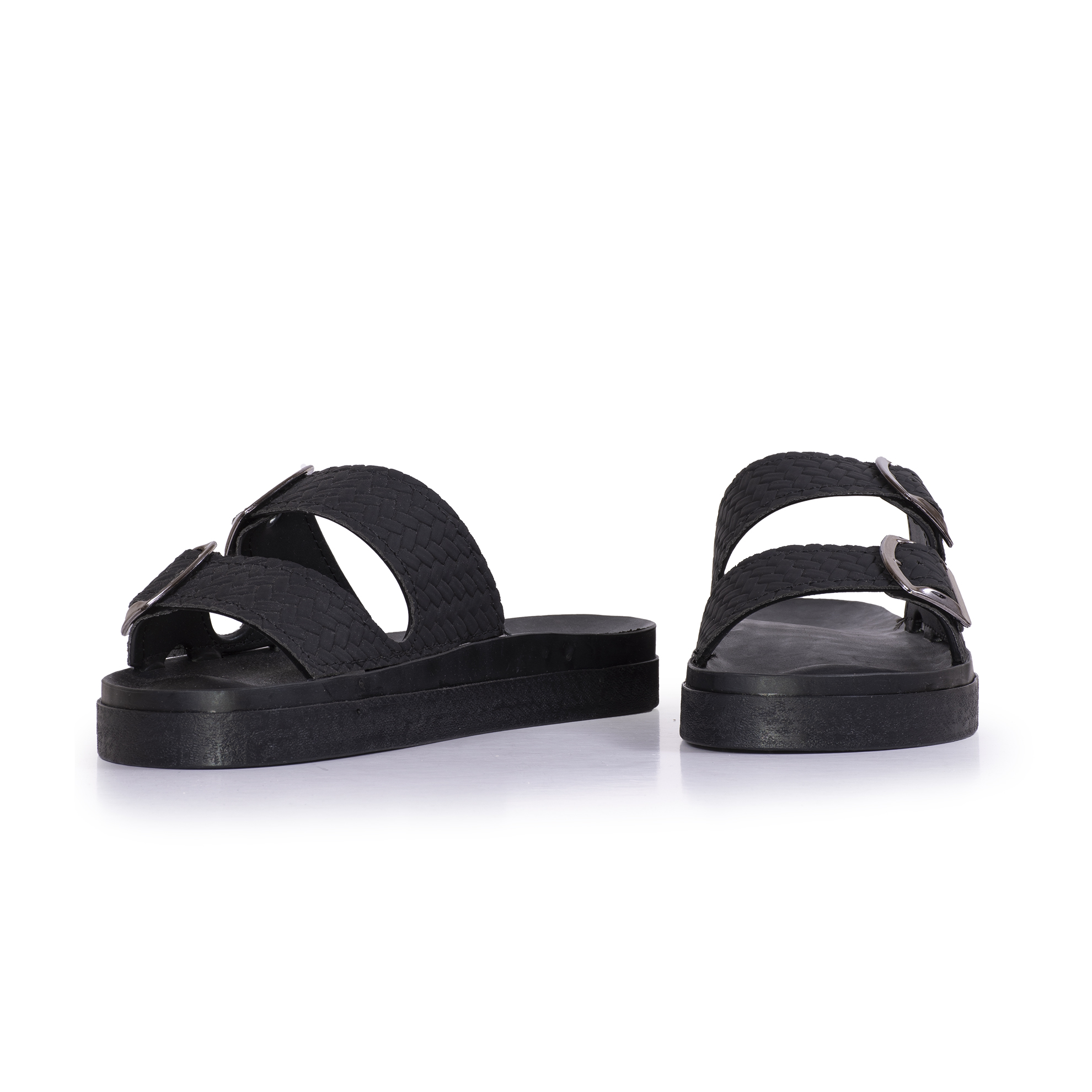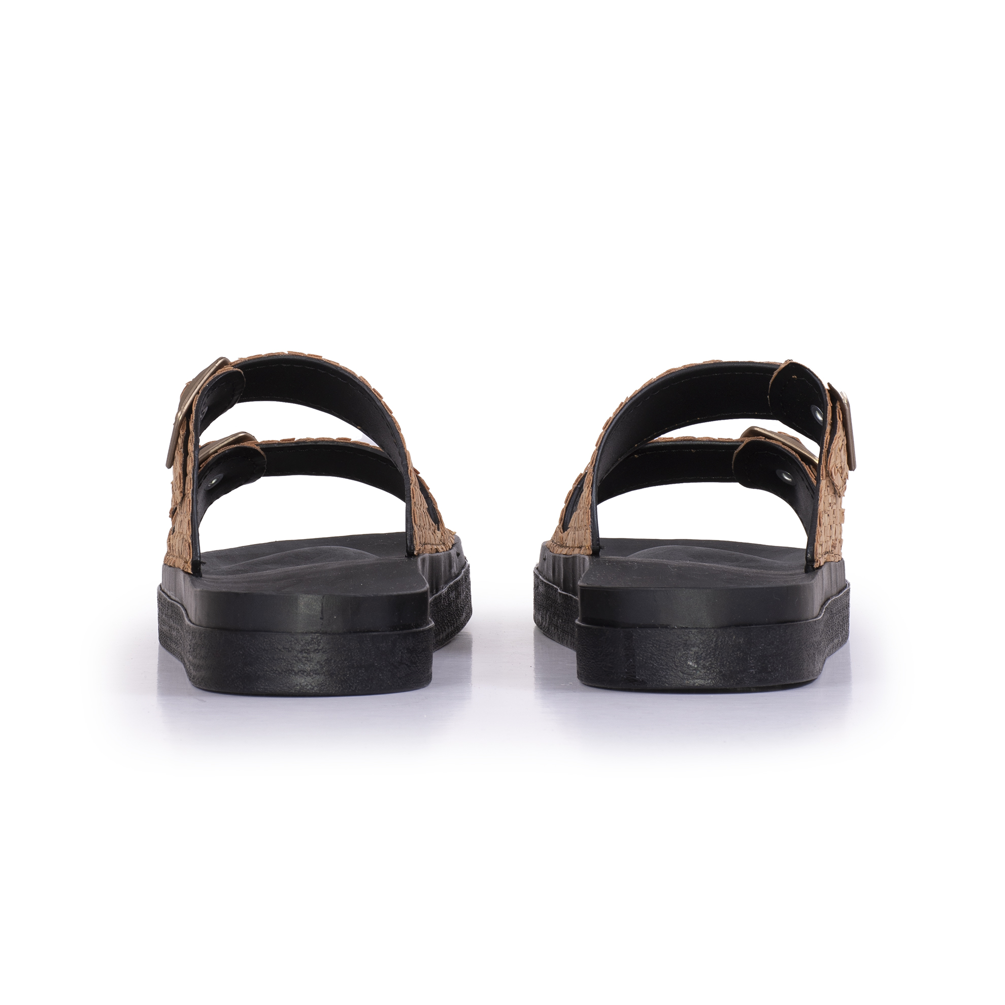 SENSI SLIPPERS made of woven straw with double strap. The durable rubber outsole provides comfort and support for any outdoor excursion, while the rustic design adds a touch of charm to your outfit. In short, these sandals are the perfect choice for the warmer months.