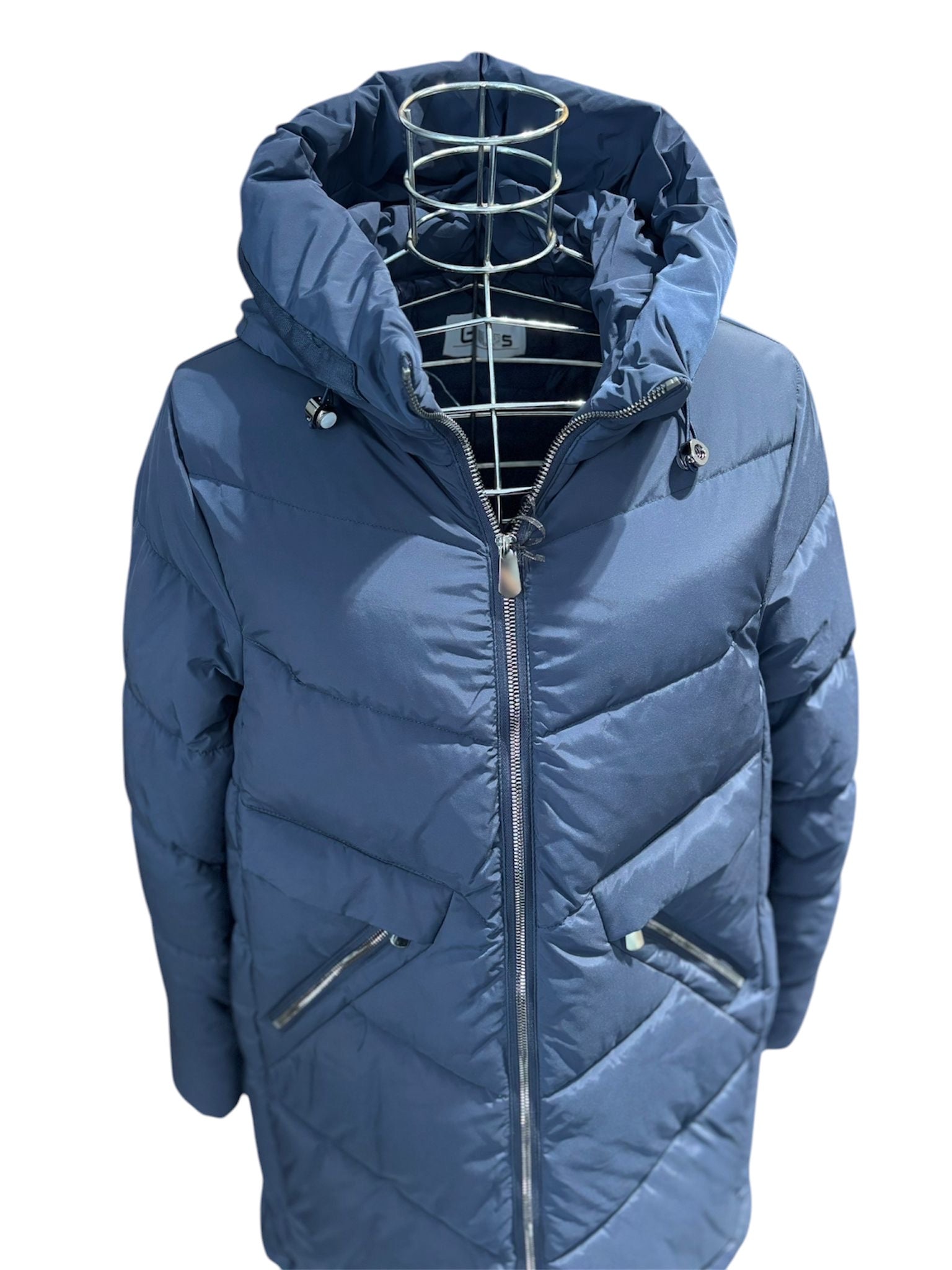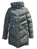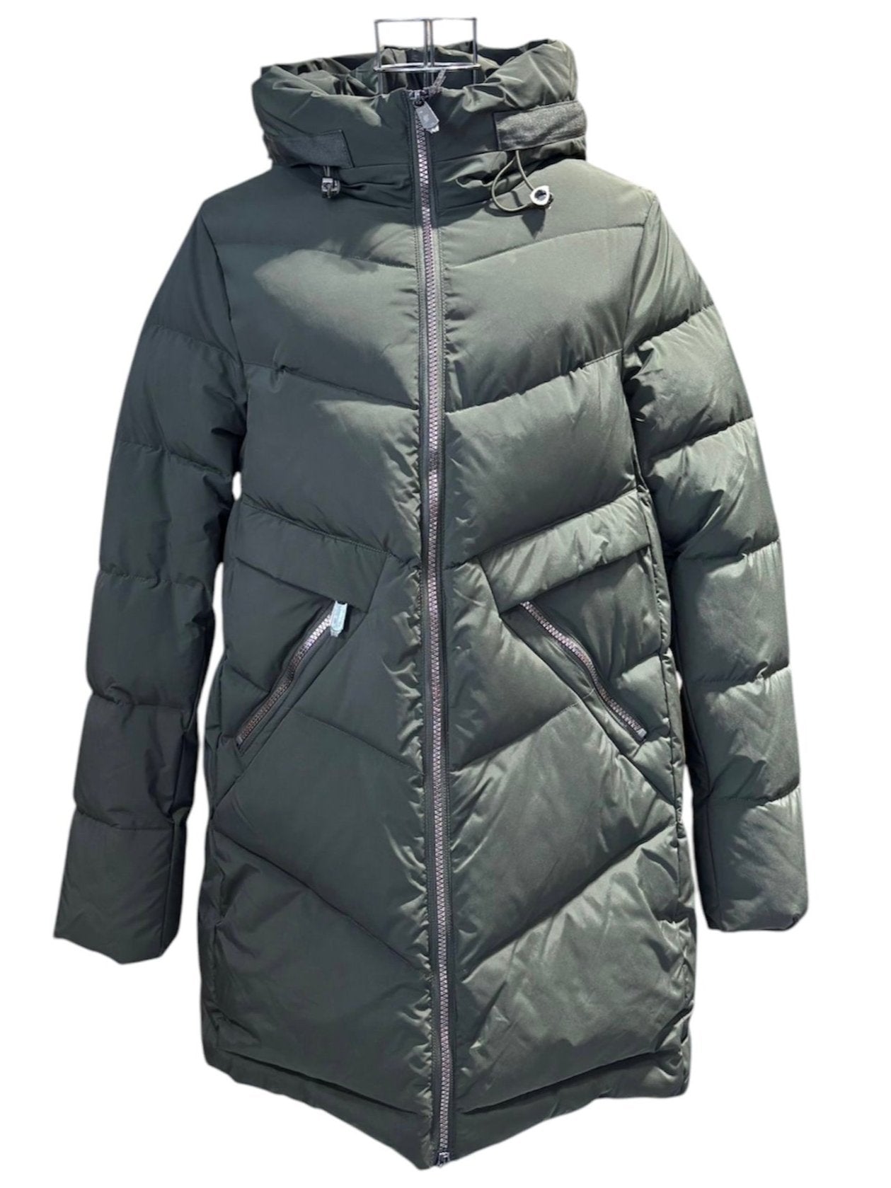 GUS PIUMINO DONNA modello midi lunghezza 3/4, con cappuccio regolabile, chiusura zip e tasche diagonali con zip.