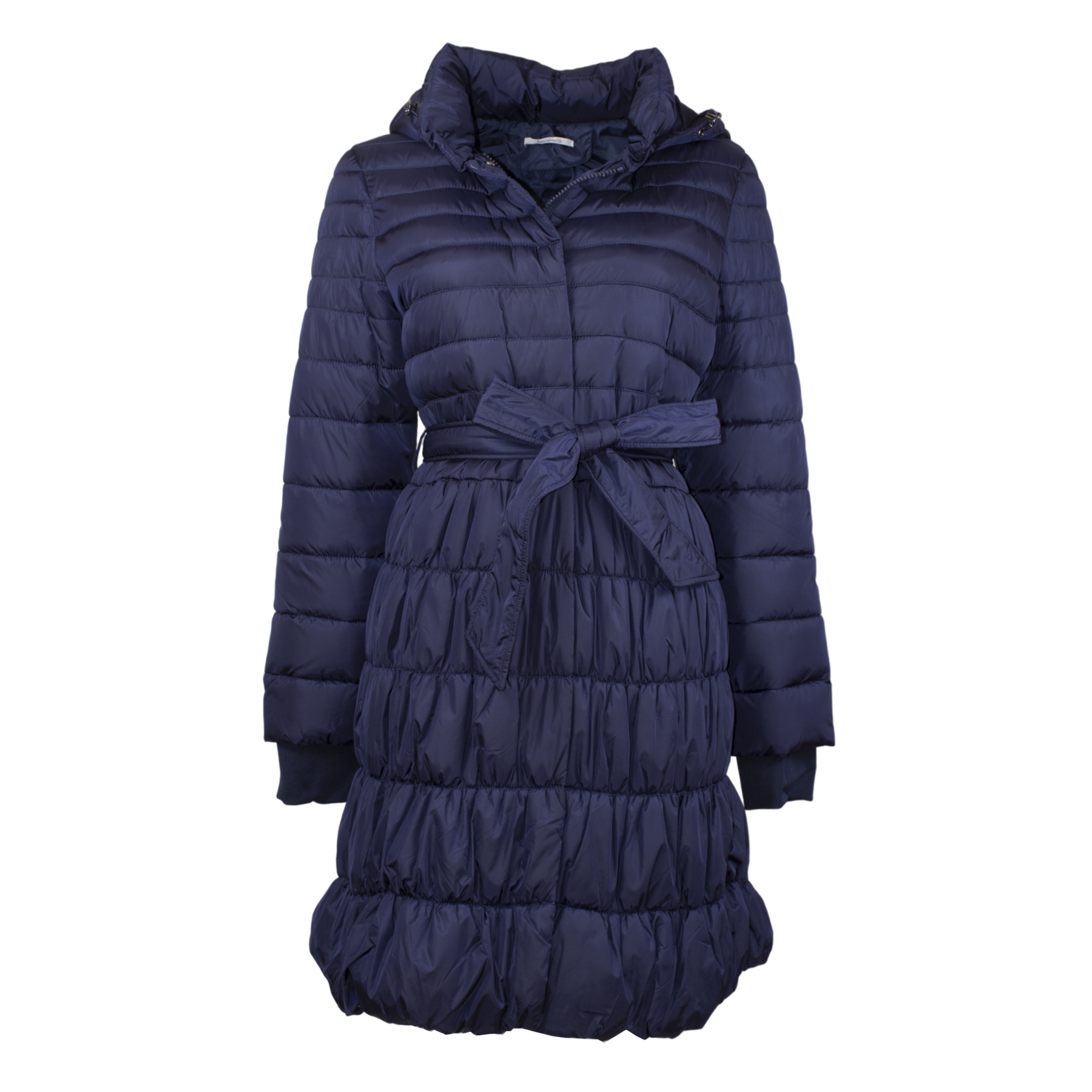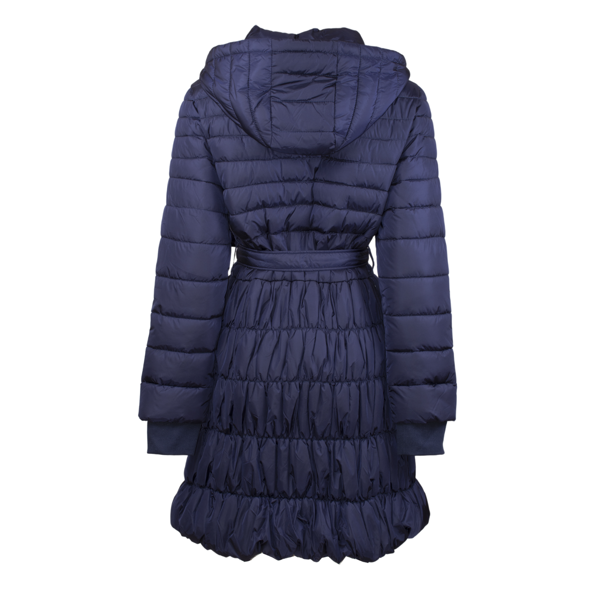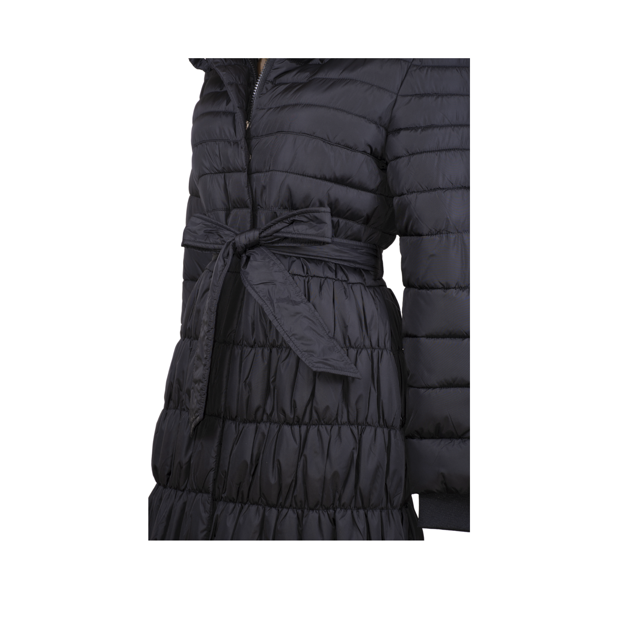 BIANCOGHIACCIO Black down jacket with hood and belt at the waist, ideal for those looking for an elegant and casual look at the same time. Made with waterproof materials, it is perfect for any occasion, informal or formal. Add a touch of style to your outfit with this down jacket.