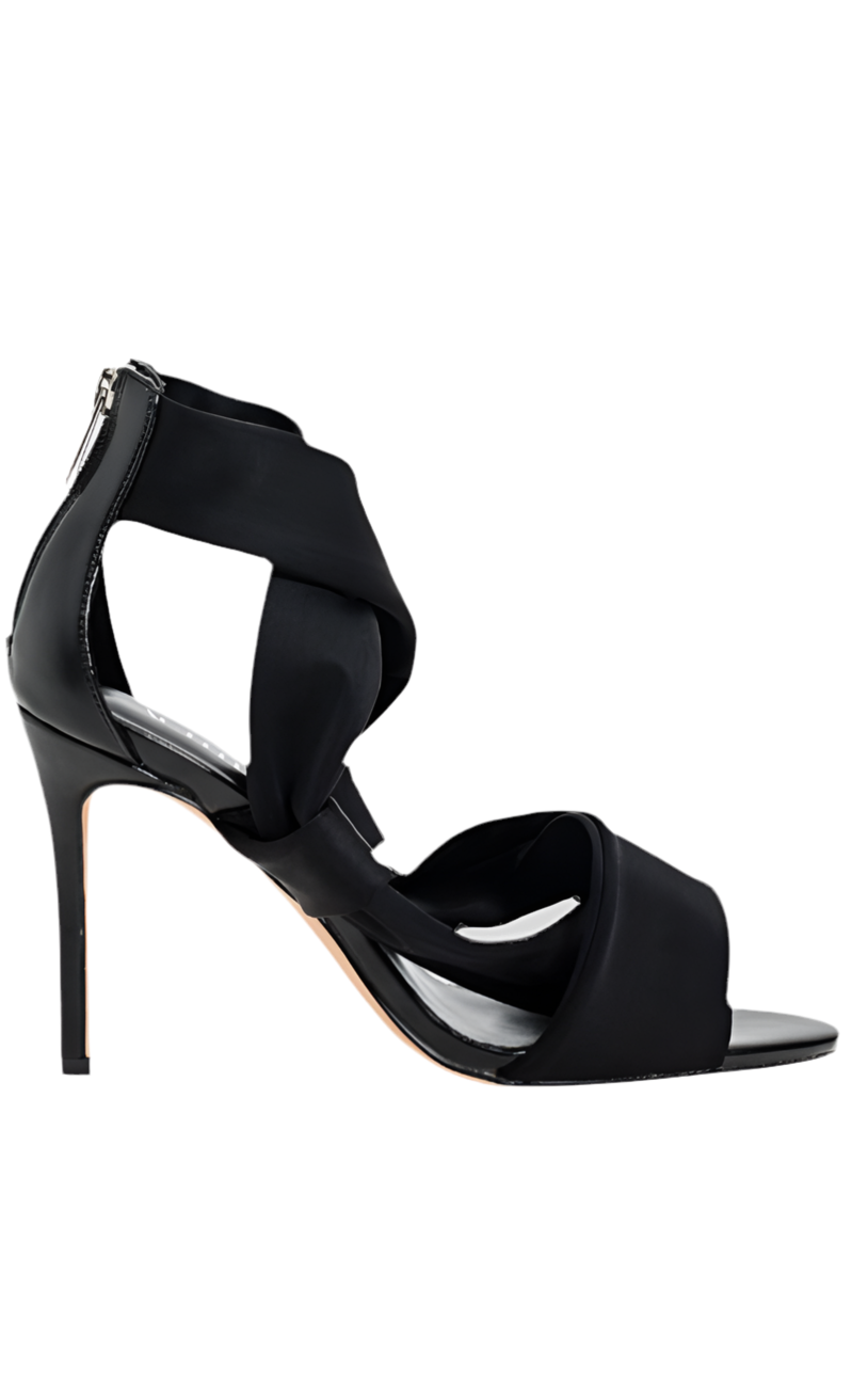 ACTITUDE TWINSET SANDALO aperto, intrecciato in raso, chiusura con zip sul retro, tacco alto.