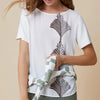 PENNYBLACK T-SHIRT arricchita da stampe con micro-strass sul davanti in crêpe de Chine aggiunge un tocco di eleganza agli outfit quotidiani. Realizzata in jersey di viscosa stretch, presenta linee diritte e morbide, con scollo a barchetta arrotondato e maniche corte. Gli spacchetti laterali al fondo completano il design, rendendola un capo versatile e luminoso.