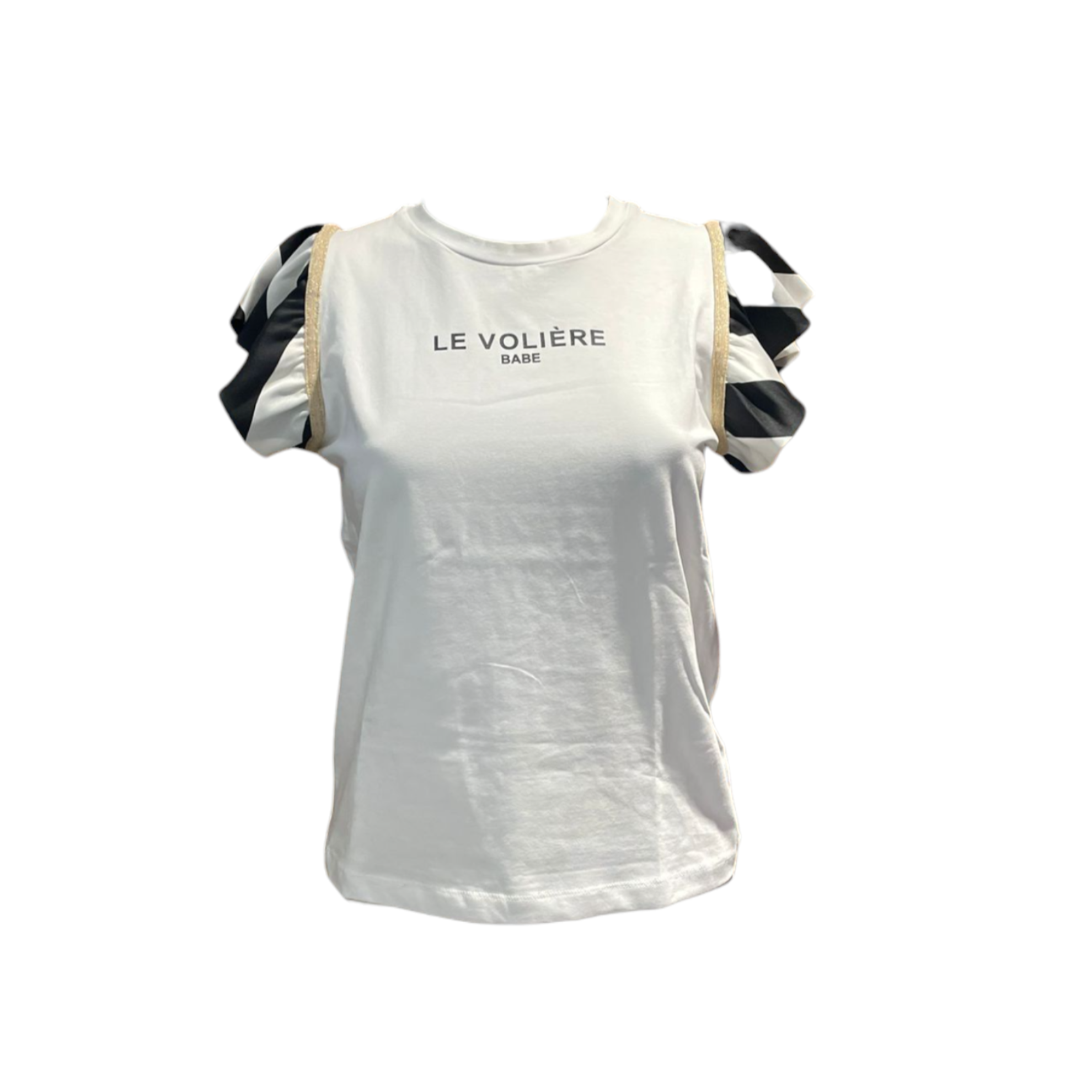 LE VOLIÈRE T-SHIRT da donna con maniche a sbuffo in fantasia rigata, scollo rotondo, stampa del logo sul petto.