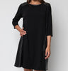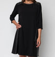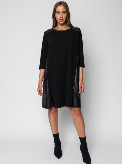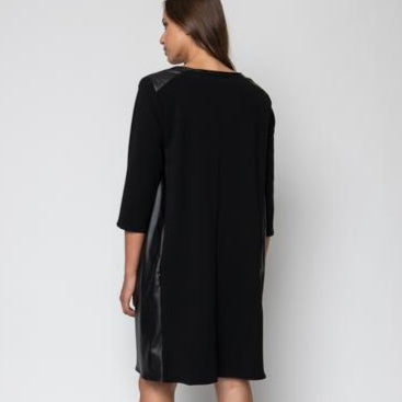 GIULIA VALLI ABITO lungo girocollo con inserti in ecopelle, un mix di eleganza e modernità per un look audace e sofisticato adatto a ogni occasione speciale.