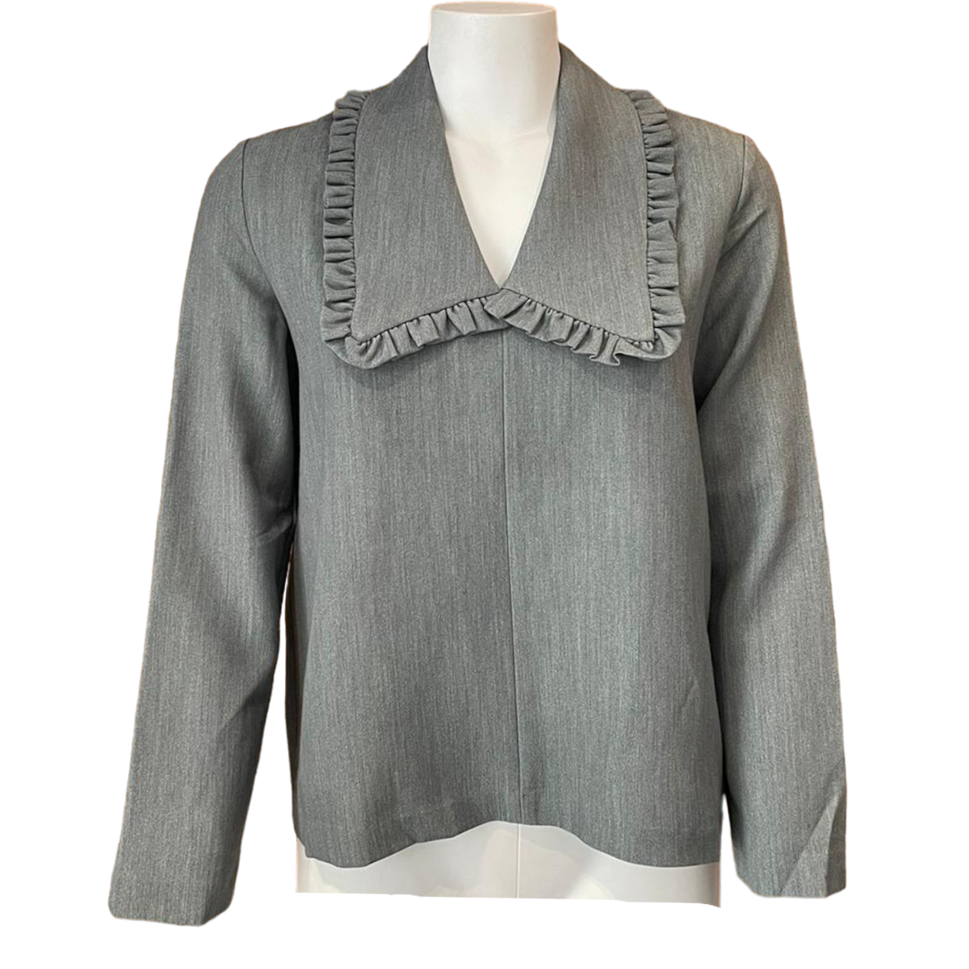TOLERANCE BLUSA con colletto a camicia con volant lungo i bordi, maniche lunghe e cucitura frontale. Indossala per un look giornaliero aggiungendo un tocco sofisticato al tuo outfit.