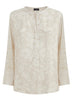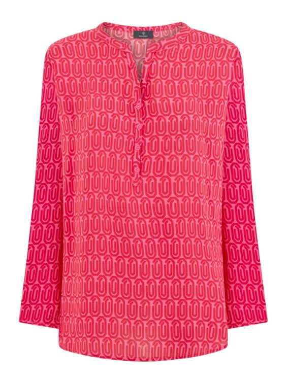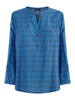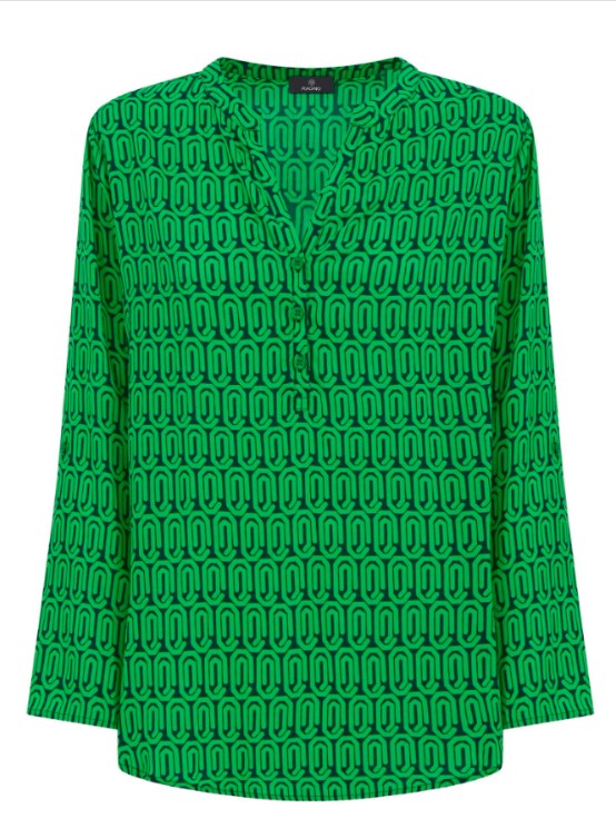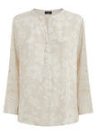 RAGNO BLUSA da donna in twill di viscosa con collo coreana a serafino e maniche 3/4 arrotolabili con fantasia floreale e fantasia con clip, in base al colore.