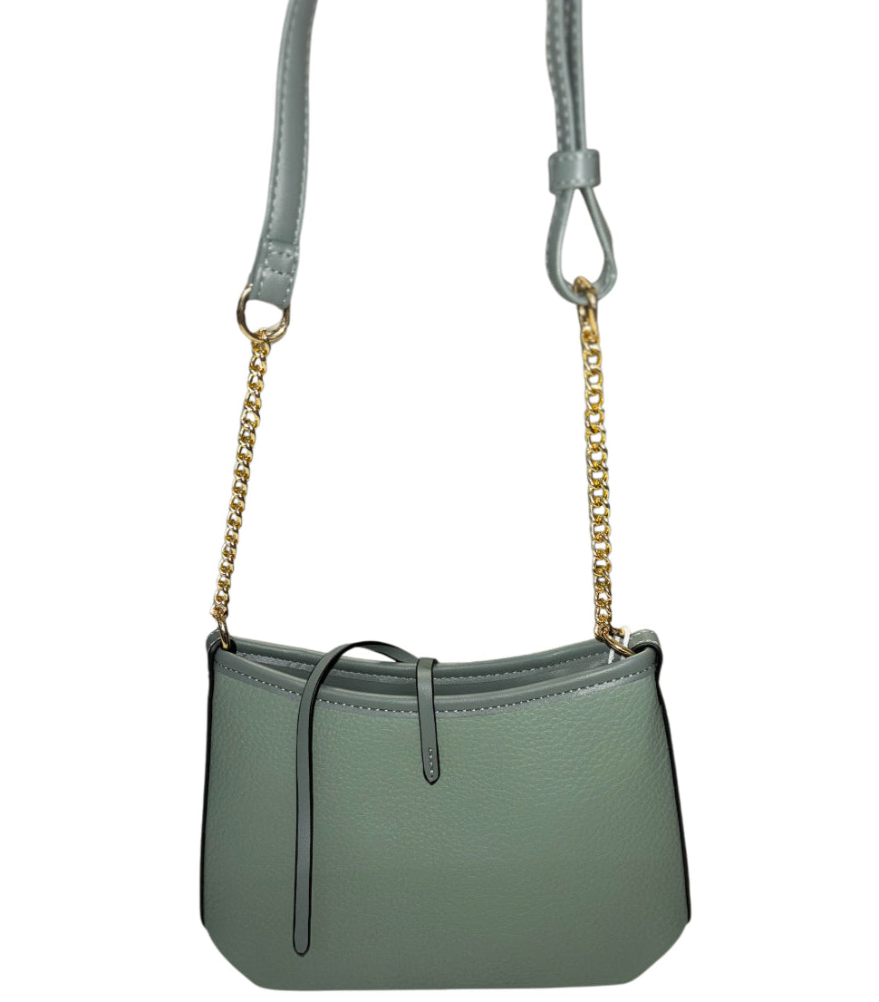 Borsa a Tracolla - Borsa compatta in ecopelle con dettagli in metallo dorato. Design raffinato con chiusura a laccio e tracolla regolabile con catena. Perfetta per ogni occasione.