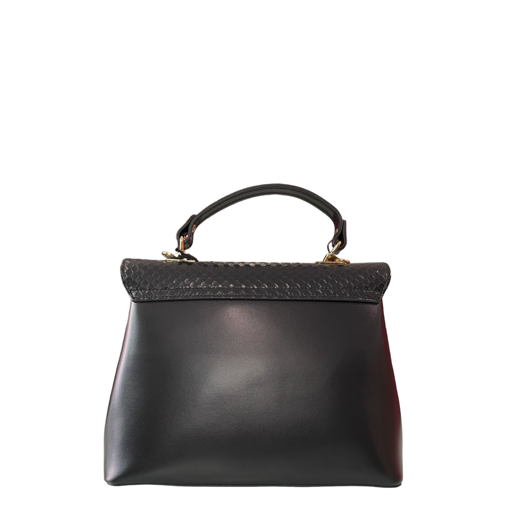 MY BAST BAGS BORSA in pelle nera. Caratterizzato da una chiusura clutch con lucchetto dorato e un manico corto, questo è l'accessorio perfetto per una serata di classe. Inoltre, i dettagli in pelle stampata gli conferiscono un tono raffinato e alla moda.