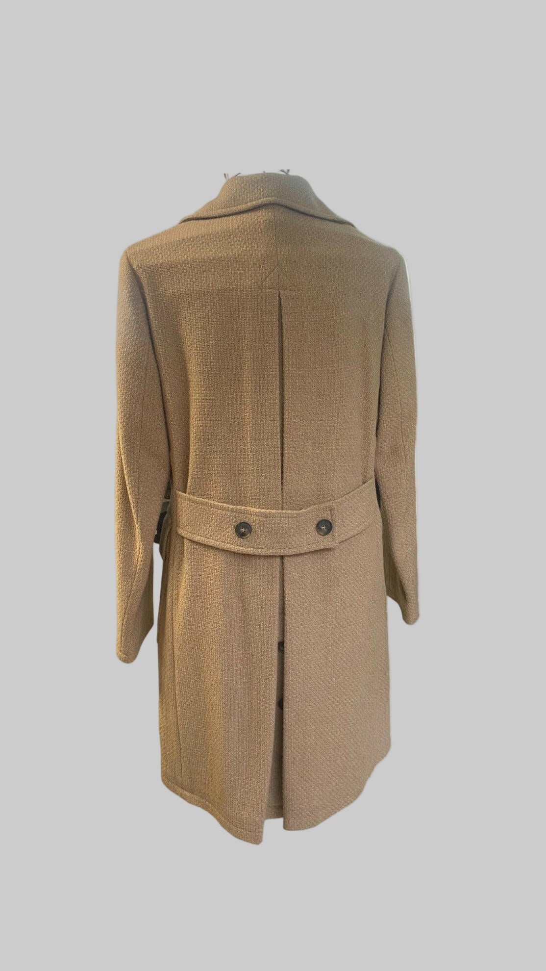 BOTTEGA MARTINESE Manteau croisé en laine couleur camel. Il comporte deux grandes poches et une sangle au dos. Produit italien unique en son genre. Fabriqué avec des matériaux de qualité, résistants et élégants, idéal pour toute occasion. Un vêtement qui donnera une touche de luxe à votre garde-robe.