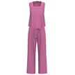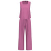 EMME MARELLA COMPLETO composto da top cropped, senza maniche con collo quadrato, più pantalone a gamba larga con chiusura con bottone a pressione e zip a scomparsa, tasche laterali e cintura rimovibile. Ti donerà un look sofisticato e alla moda.