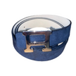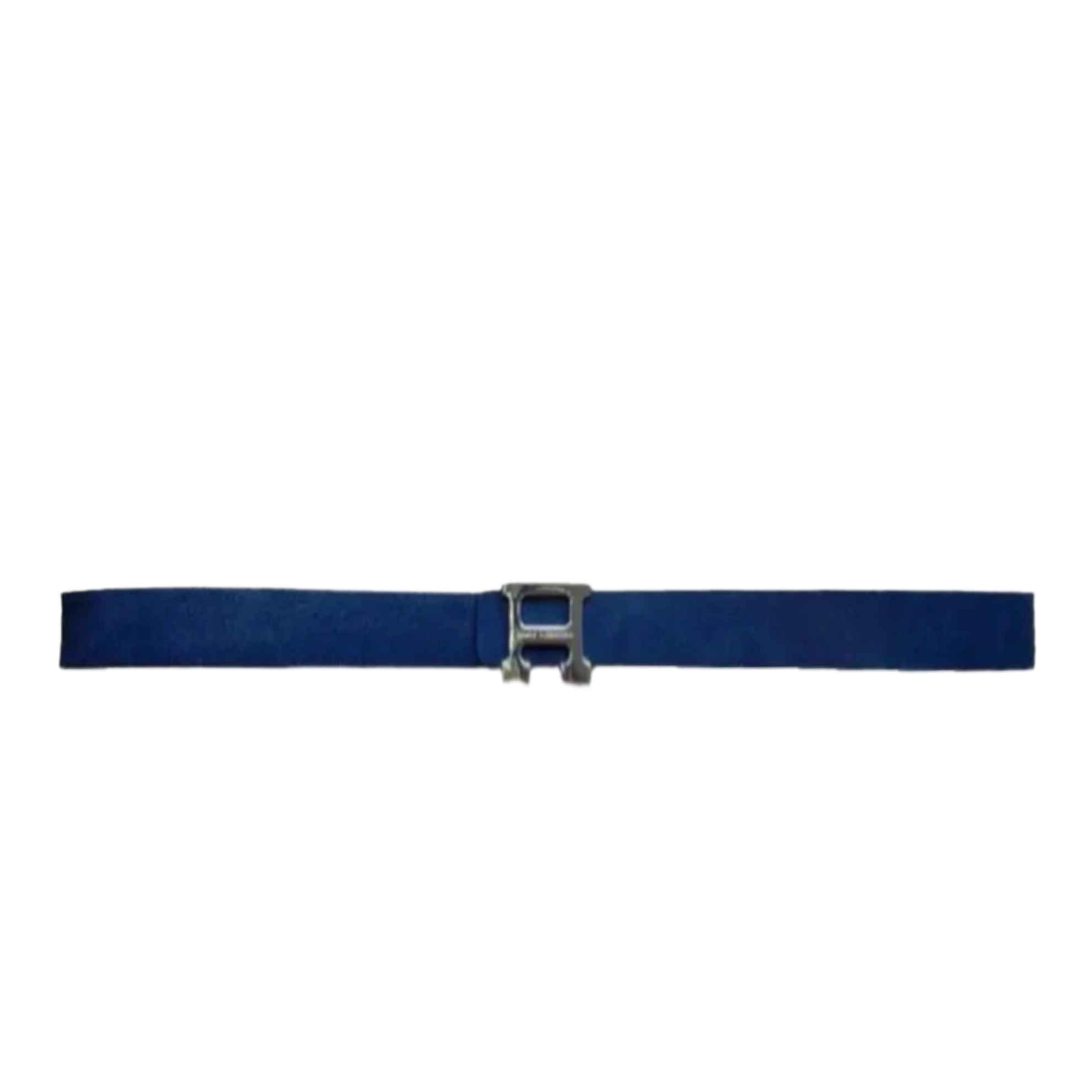 CEINTURE ALESSANDRINI en daim d'une élégante couleur bleue. Il est doté d'une fermeture à clip et d'une boucle en acier en forme de A signée Alessandrini. Rehaussez n'importe quelle tenue avec cette ceinture luxueuse qui offre plus de confort et de durabilité.