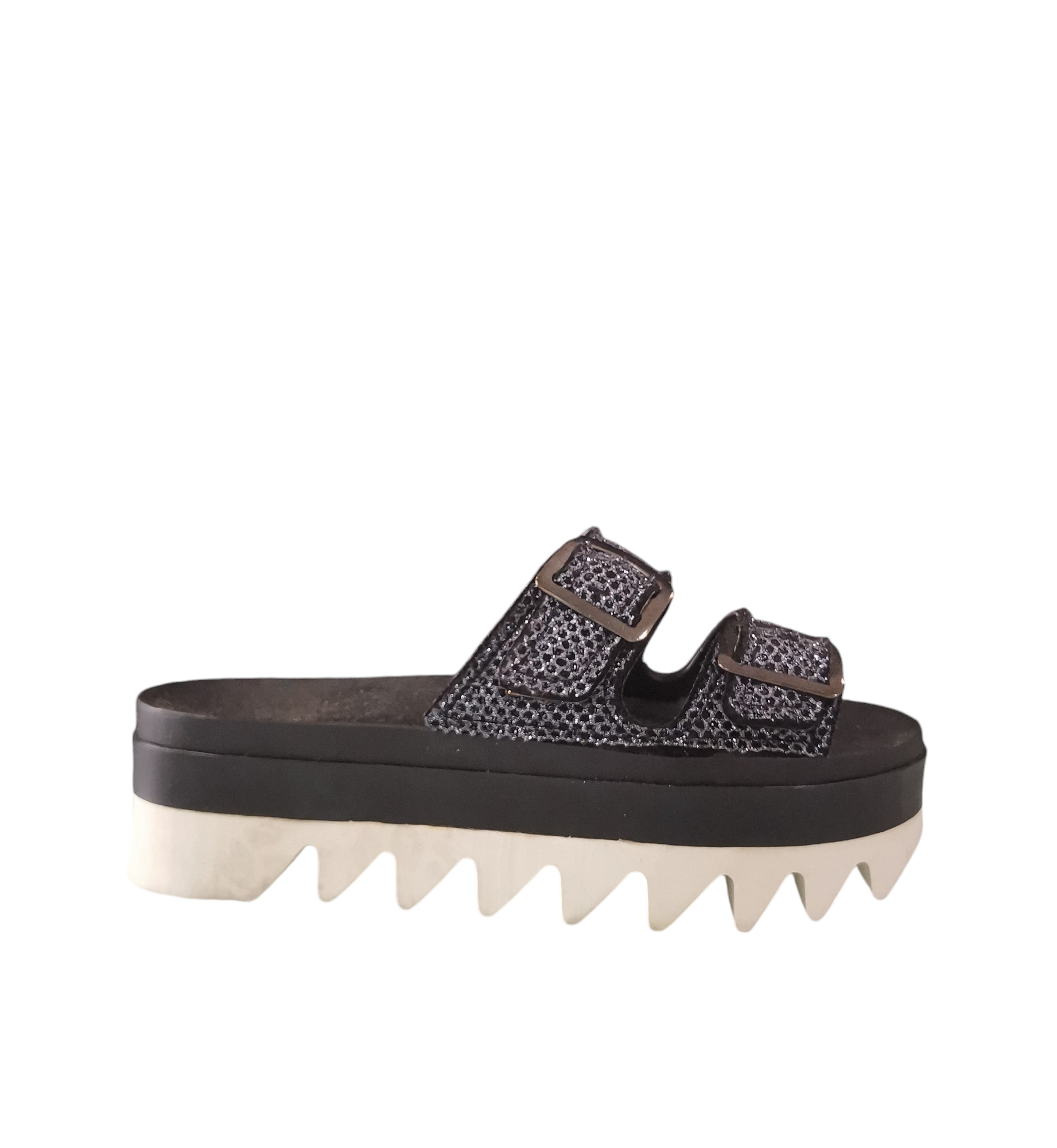 SENSI SANDALO con tomaia a doppio cinturino, in tessuto glitterato disponibile in due varianti e gomma alta fondo squalo. Perfetti per completare un look fashion e ricercato.