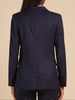 FEDERICA ERRE giacca da tailleur in tessuto blu gessato con rigo a contrasto bianco, modello doppio petto con rever a lancia.