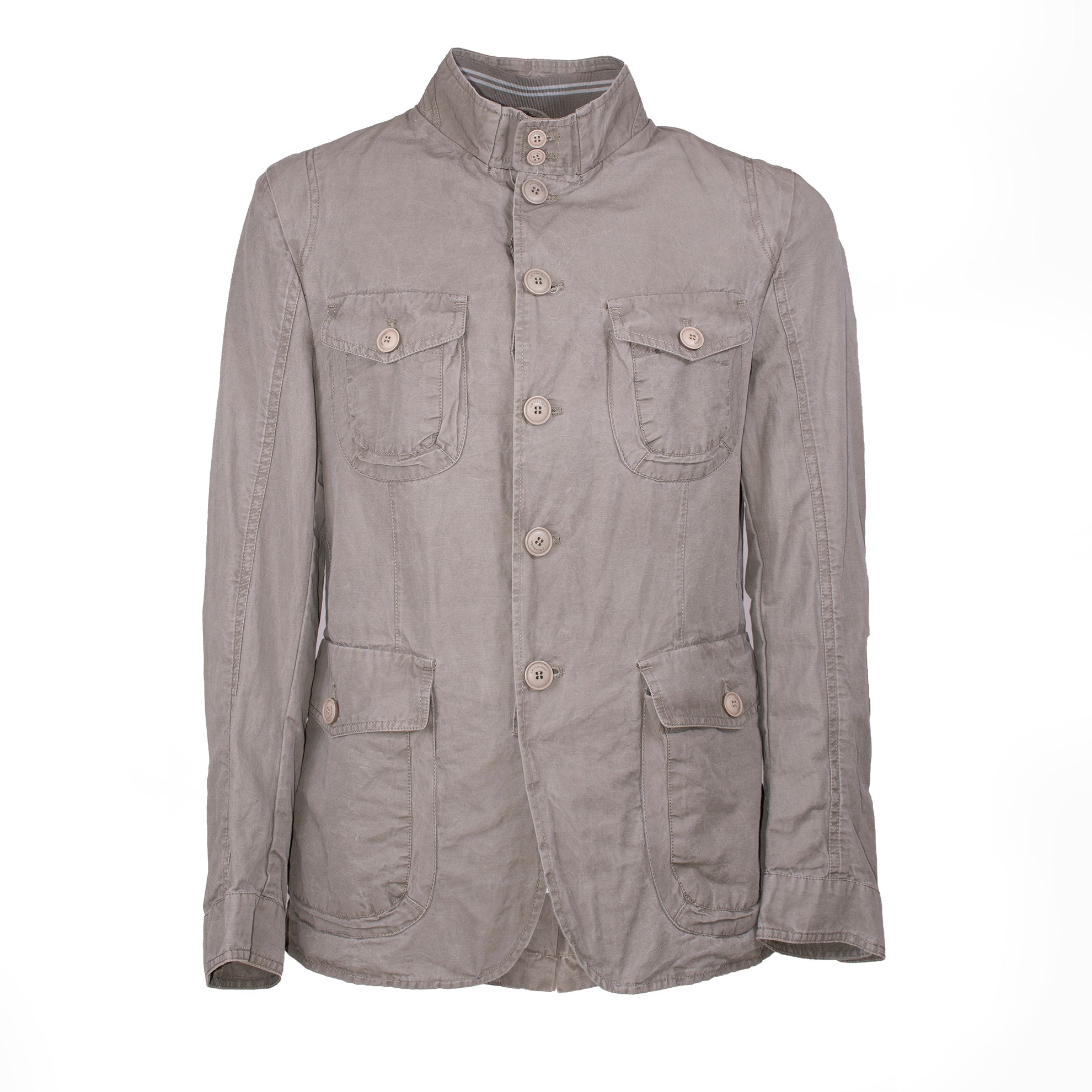 J.W. TABACCHI GIACCA da uomo monopetto con bottoni, ampie tasche laterali con patta e due taschini in alto con bottone, colletto alla coreana, spacco sul retro. Disponibile in due varianti.