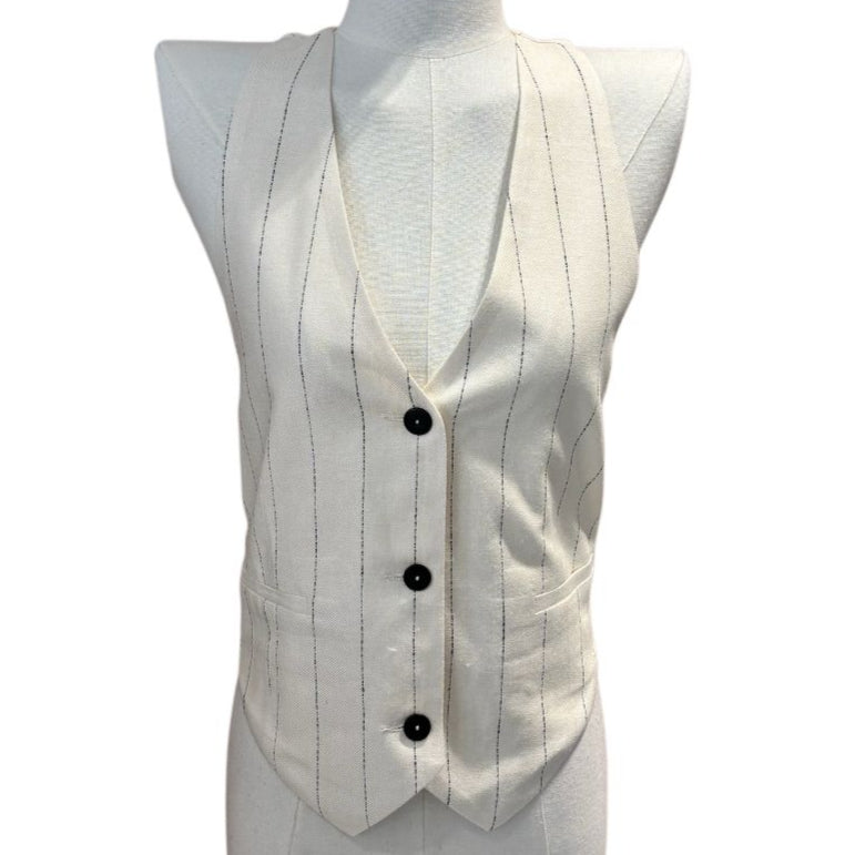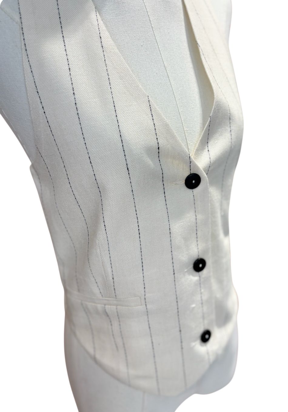 HAPPY25 GILET classico intramontabile rivisitato con stile contemporaneo. Questo gilet gessato a tre bottoni unisce linee pulite e taglio sartoriale, valorizzando la silhouette con una vestibilità asciutta e strutturata. Il motivo gessato dona verticalità e raffinatezza, ideale per look formali o per aggiungere un tocco maschile-chic a outfit più casual. Perfetto da indossare da solo o sotto una giacca, per uno stile curato e senza tempo.
