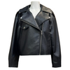 TWINSET ACTITUDE GIUBBOTTO chiodo effetto pelle martellata. Presenta una chiusura asimmetrica con zip in metallo, alamari sulle spalle e taschino con patta. Un capo senza tempo da indossare in qualsiasi stagione.