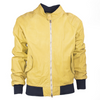 BRODGEN TRACK GIUBBOTTO in pelle, gialla con polsini e bordo finale e finiture in cotone blu È progettato con due tasche funzionali e chiusura con zip, completo di collo alto e doppi bottoni per una maggiore protezione dal freddo. Abbinalo ai jeans per un look eccentrico ma alla moda.