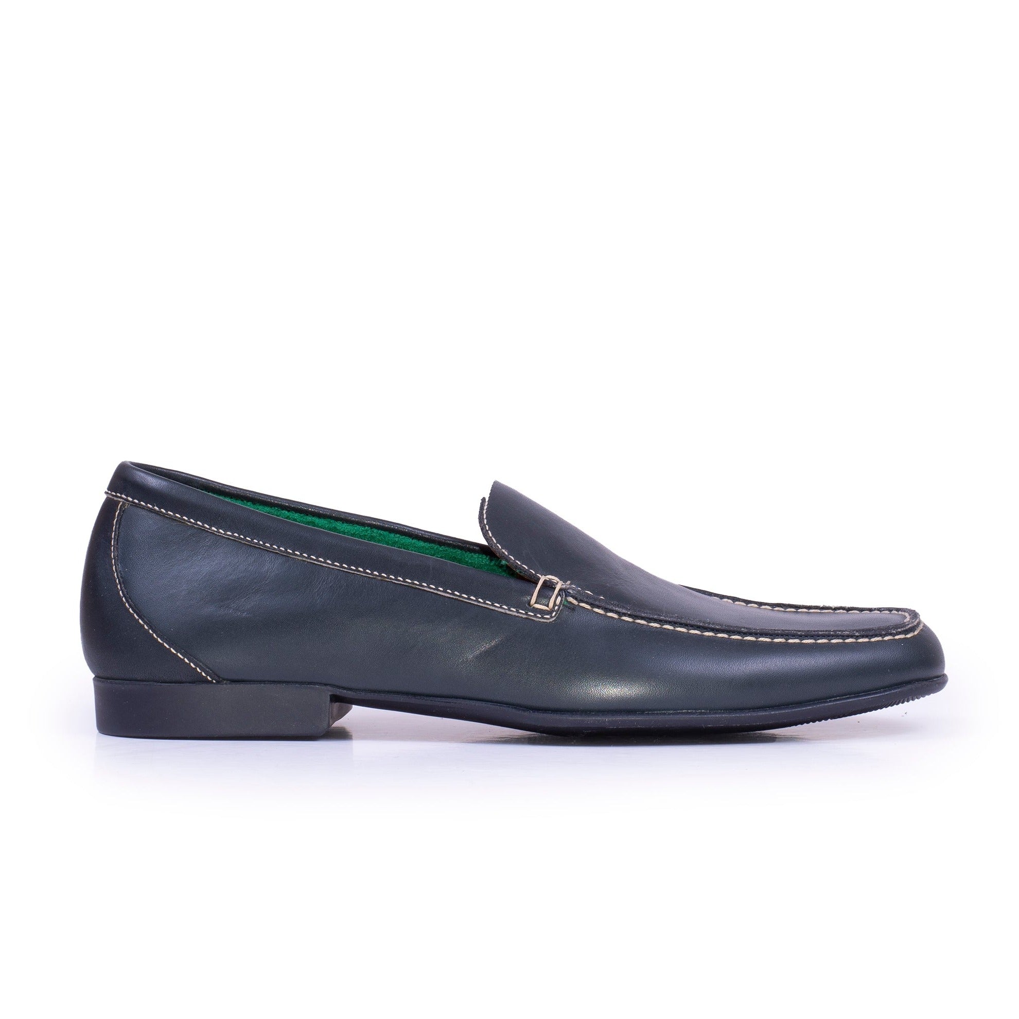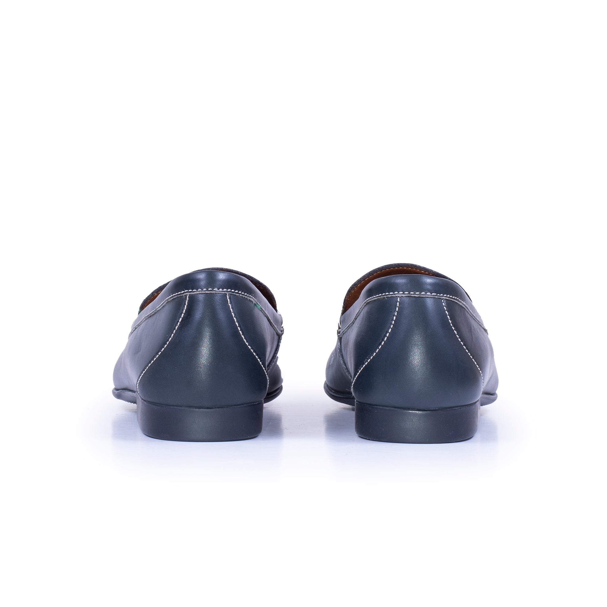Mocassino in pelle con punta arrotondata e cuciture a contrasto