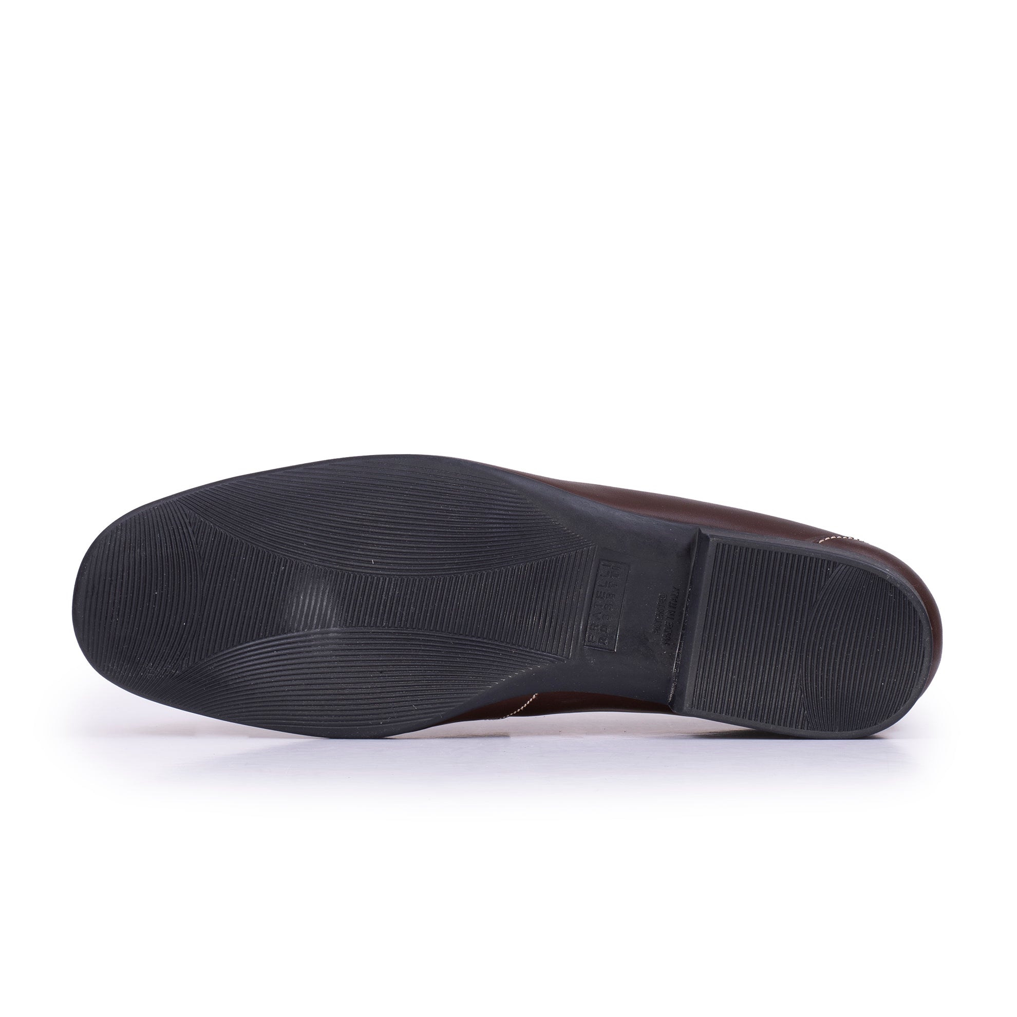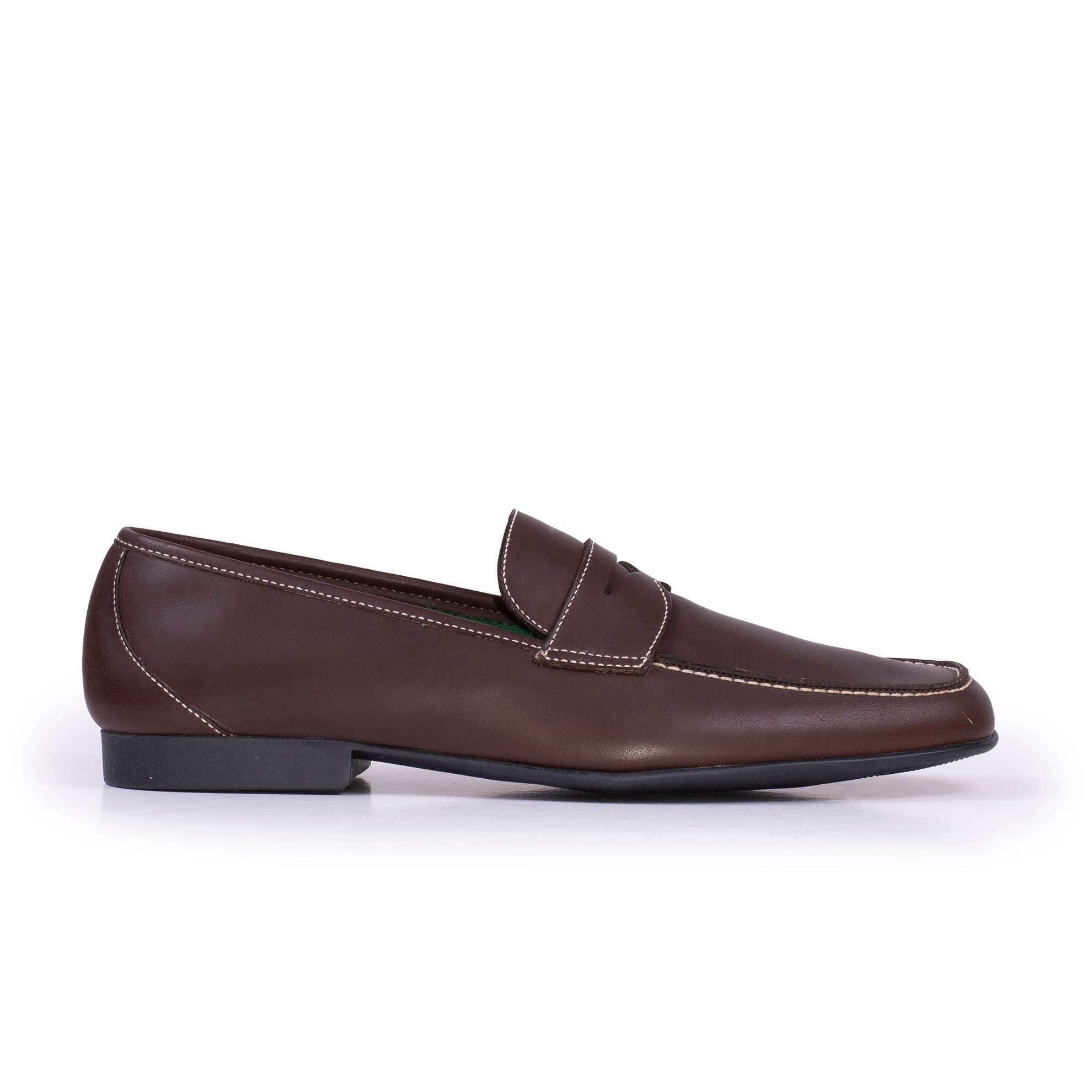 Mocassino in pelle con punta arrotondata e cuciture a contrasto