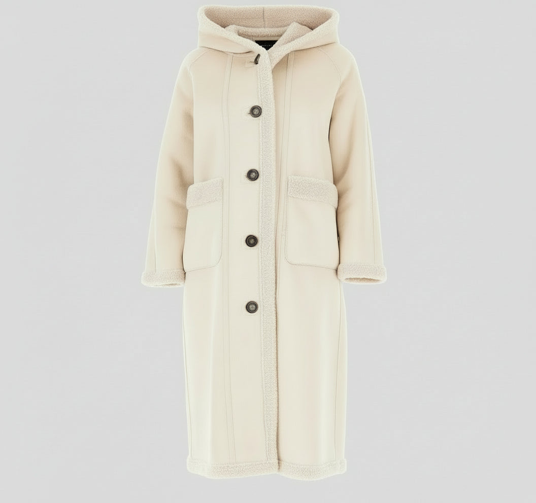 EMME MARELLA CAPPOTTO Progettato da esperti per il massimo stile e funzionalità. Resta al caldo e alla moda in ogni situazione con il suo design eco-montone reversibile, completo di cappuccio e chiusura con bottoni di sicurezza. Il tessuto scamosciato e l'effetto montone a contrasto aggiungono un tocco di eleganza a questo cappotto versatile ed ecologico.