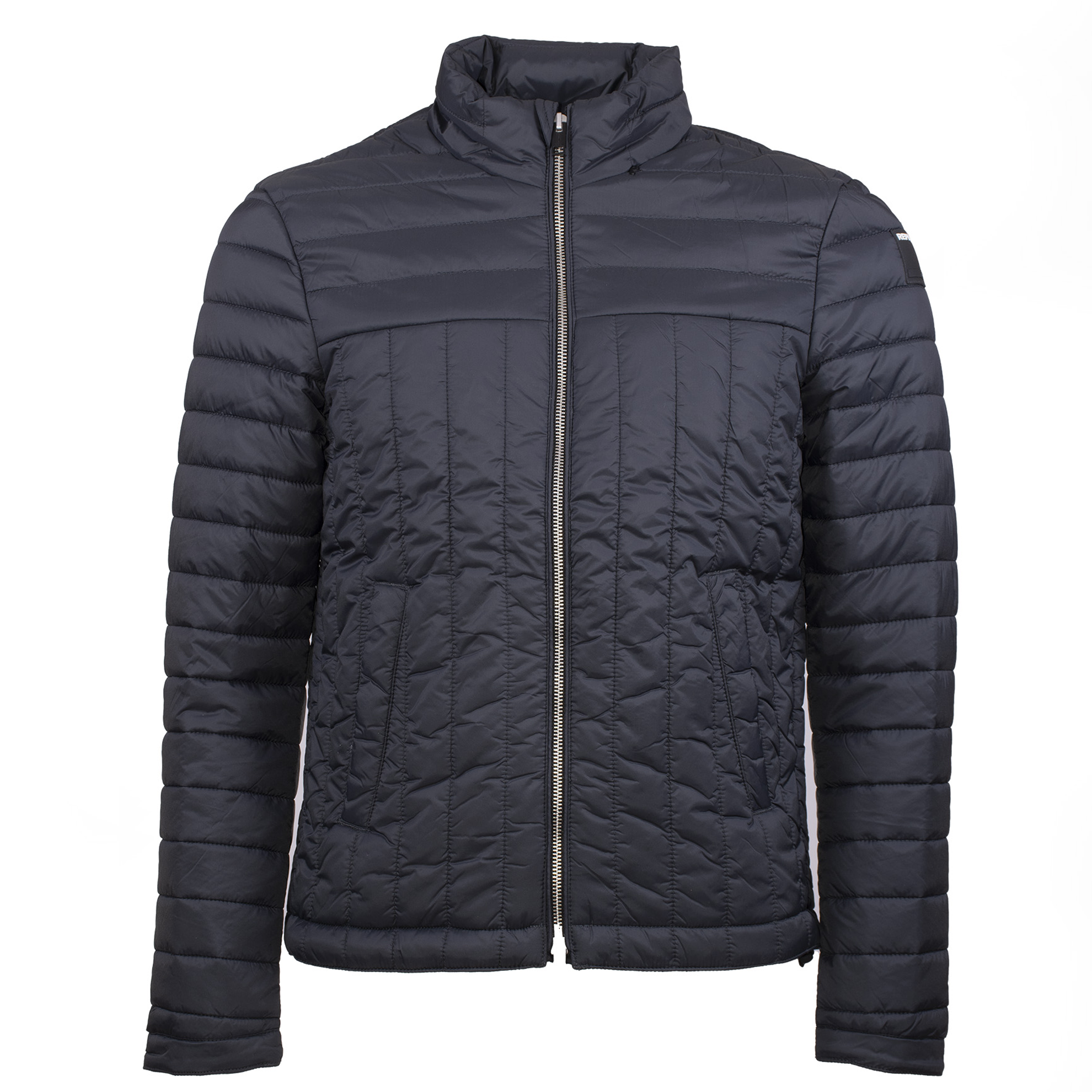 REPLAY piumino 100 grammi premium, modello corto bikers con collo pistagna ed impunture a fascia stretta. Bordino di pulizia in cotone piccolo ai polsi e al fondo.
