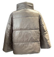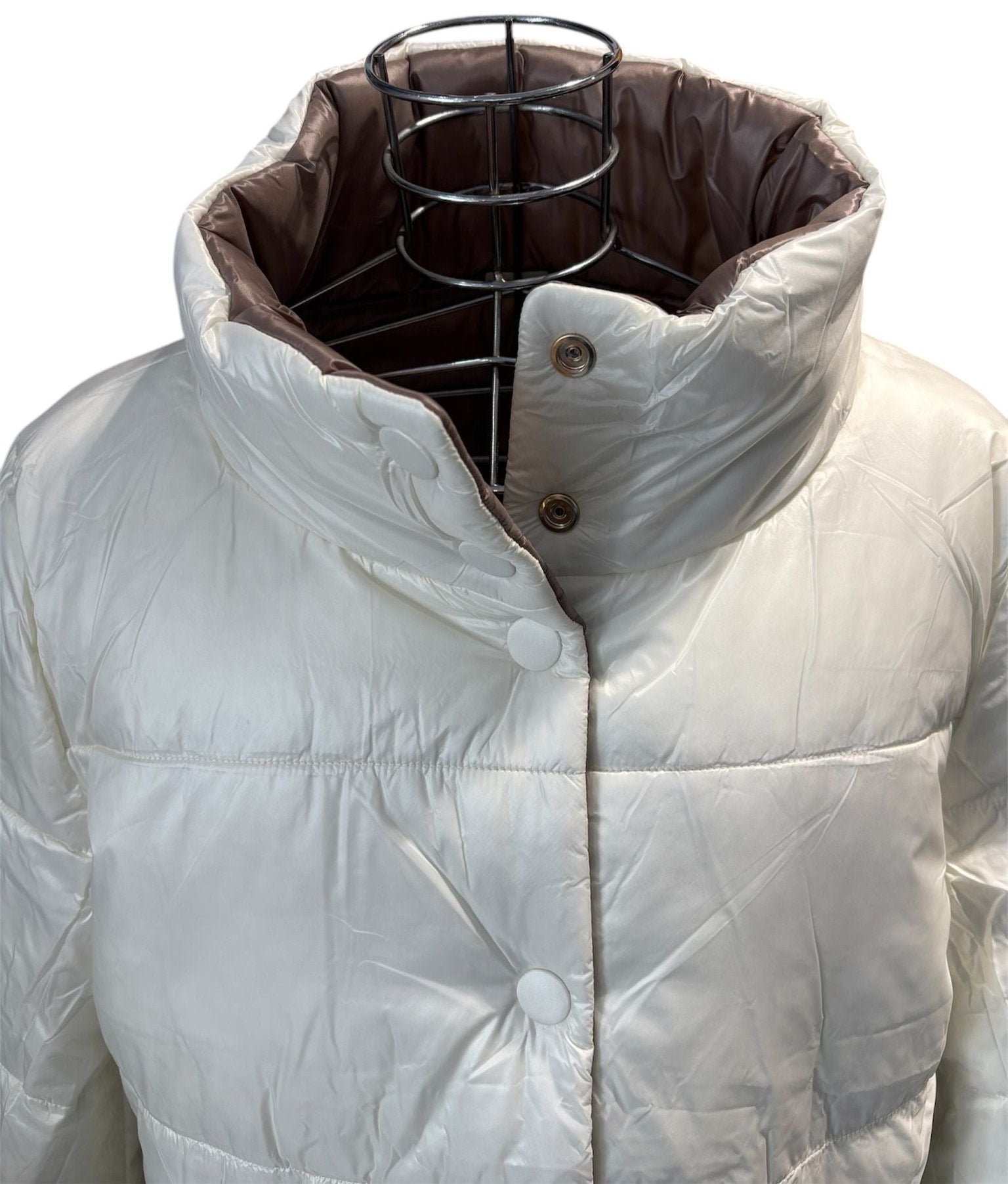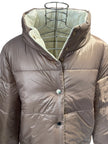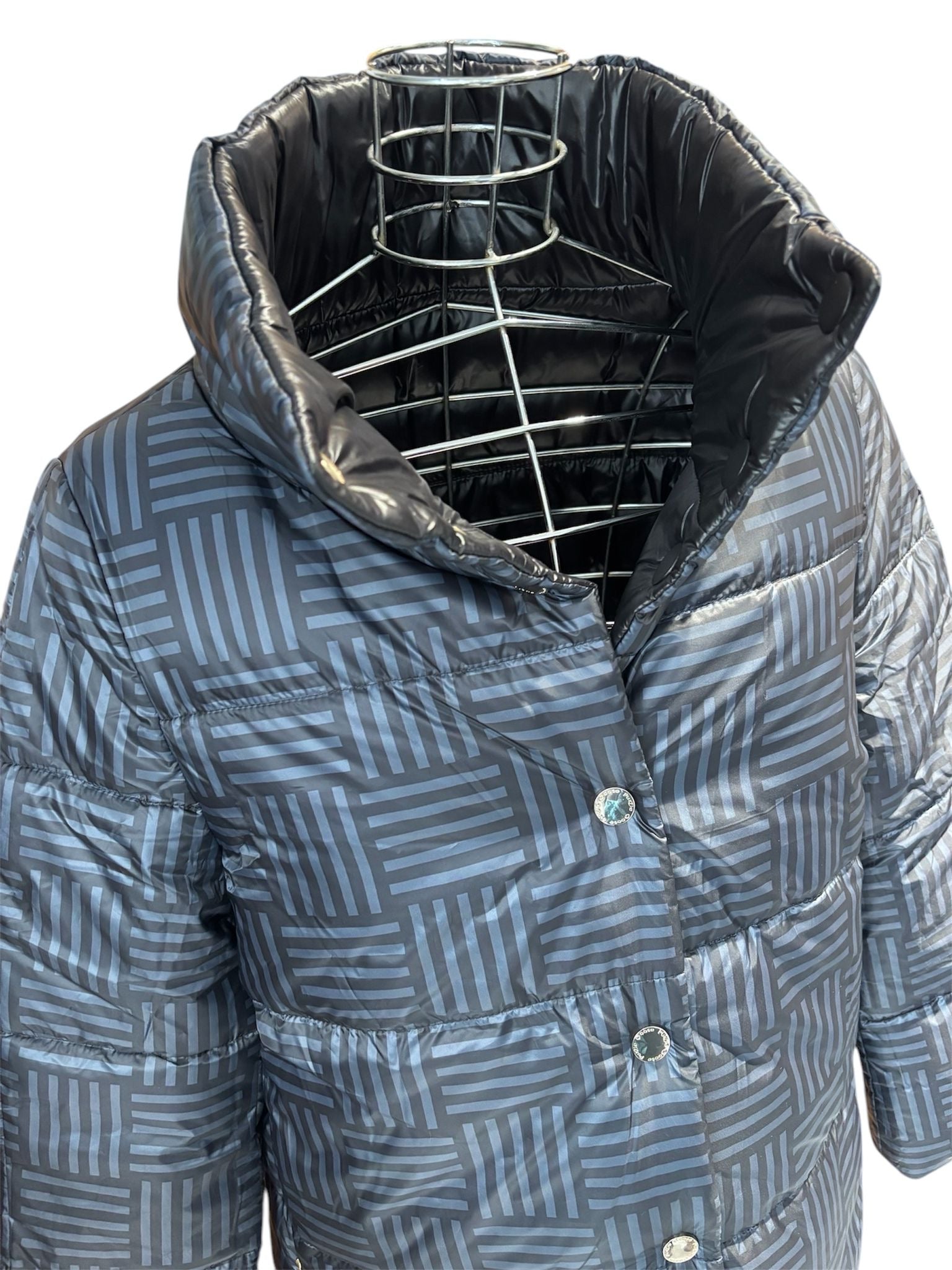 PUZZLE GOOSE PIUMINO donna realizzato con tessuto stampato. Modello double face con interni tinta unita. manica lunga, collo alto e abbottonatura clips.