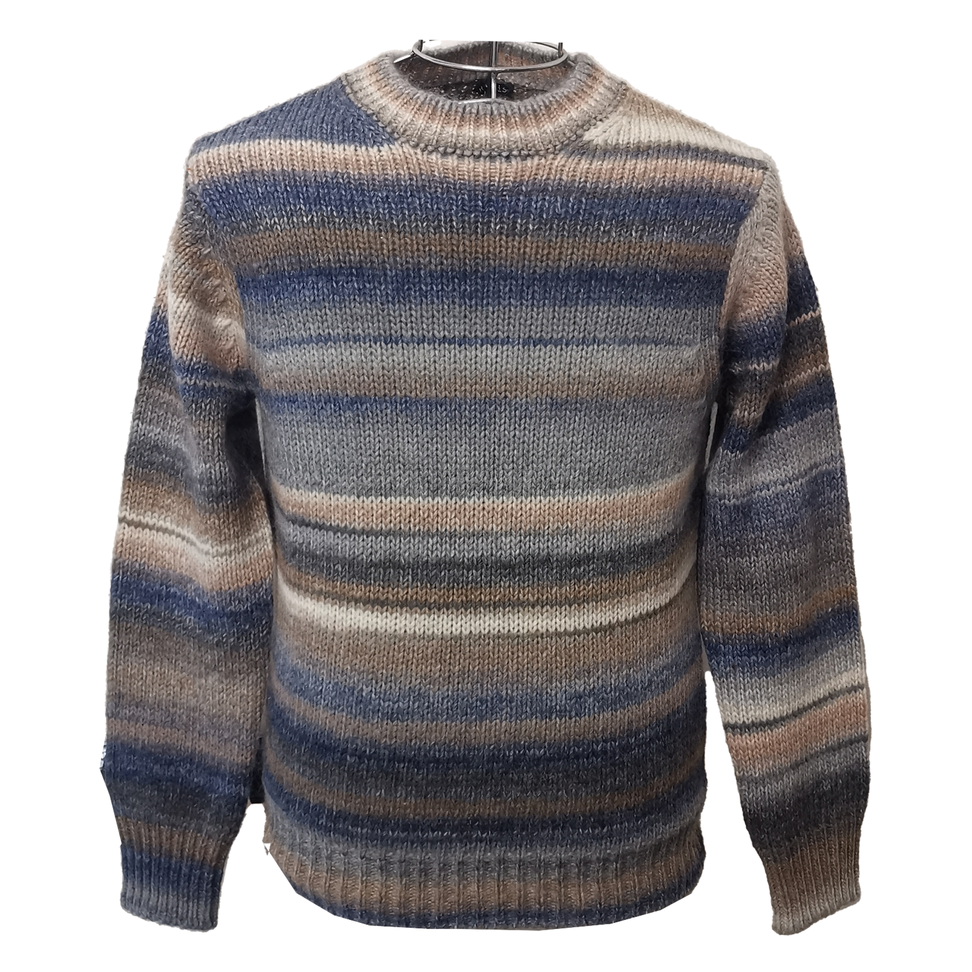 PULL RETOIS en laine col rond avec col et poignets côtelés. Avec ces nuances de beige et de bleu, vous pourrez l'associer à n'importe quel style, donnant une touche moderne et classe à votre tenue.
